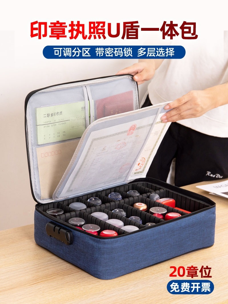 印章收纳盒印章营业执照收纳包带密码锁印章盒办公印章包执照包