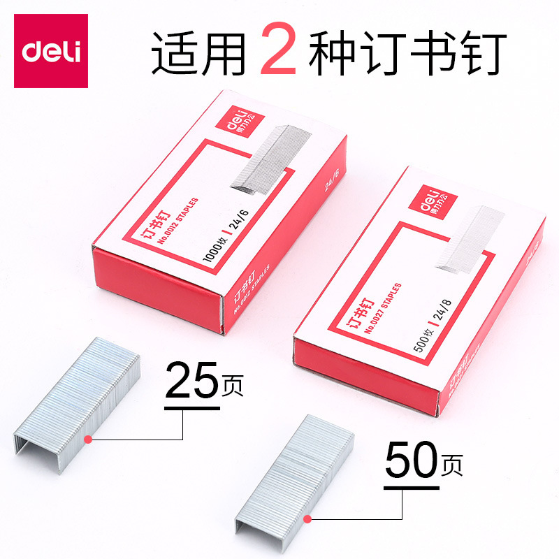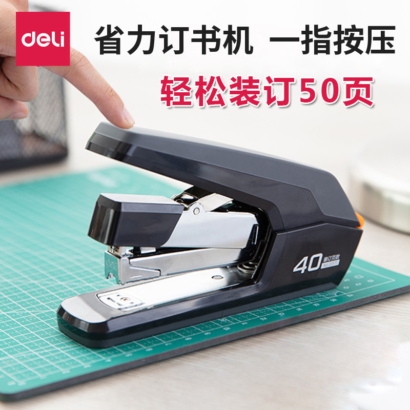 得力0371省力订书机中号加厚型可钉40页订书器办公学生省力订书机