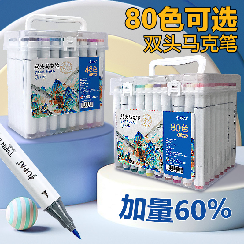 巨派水性双头马克笔套装防水速干学生绘画涂鸦软头儿童无毒水彩笔