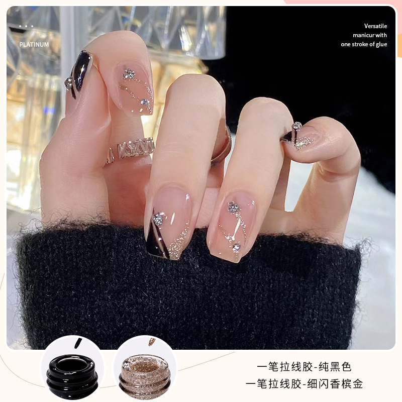 一笔拉稀胶爆闪铂金银指甲油胶金属勾边胶