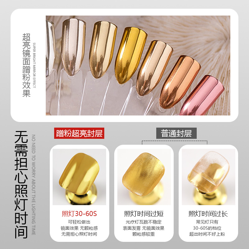 美甲蹭粉封层镜面粉魔镜粉专用胶不掉粉超亮免洗功能甲油胶