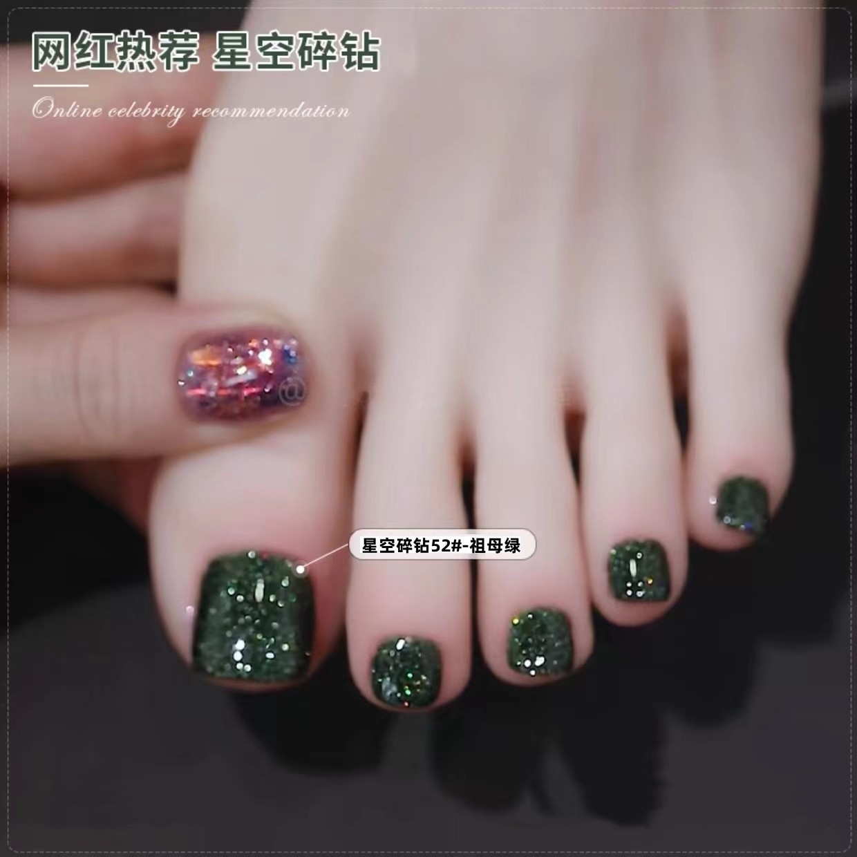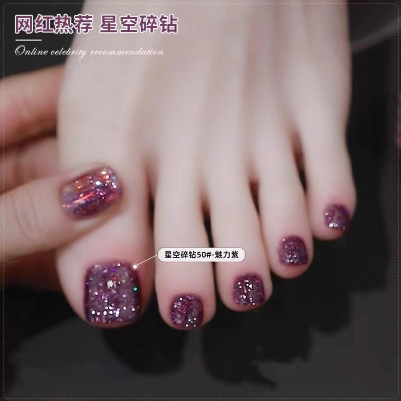 星空碎钻脚指甲油免烤不可撕持久不掉色防水亮晶晶爆闪