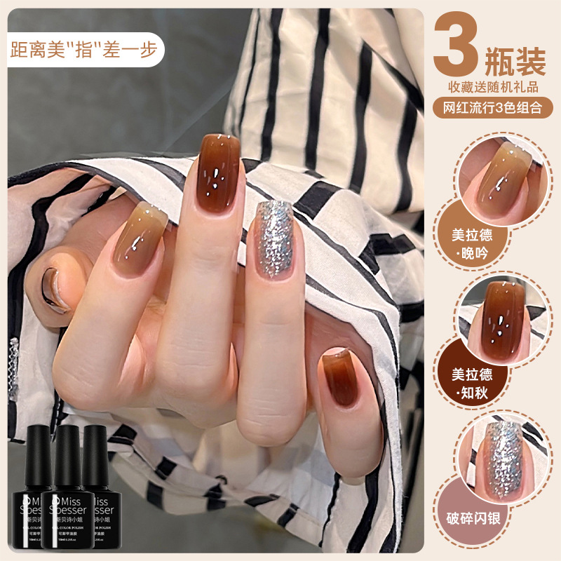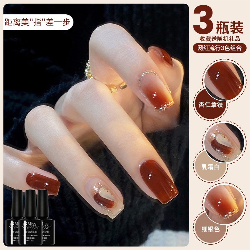 色秋冬冰透裸色指甲油胶年新款流行显白三色套装全套美甲