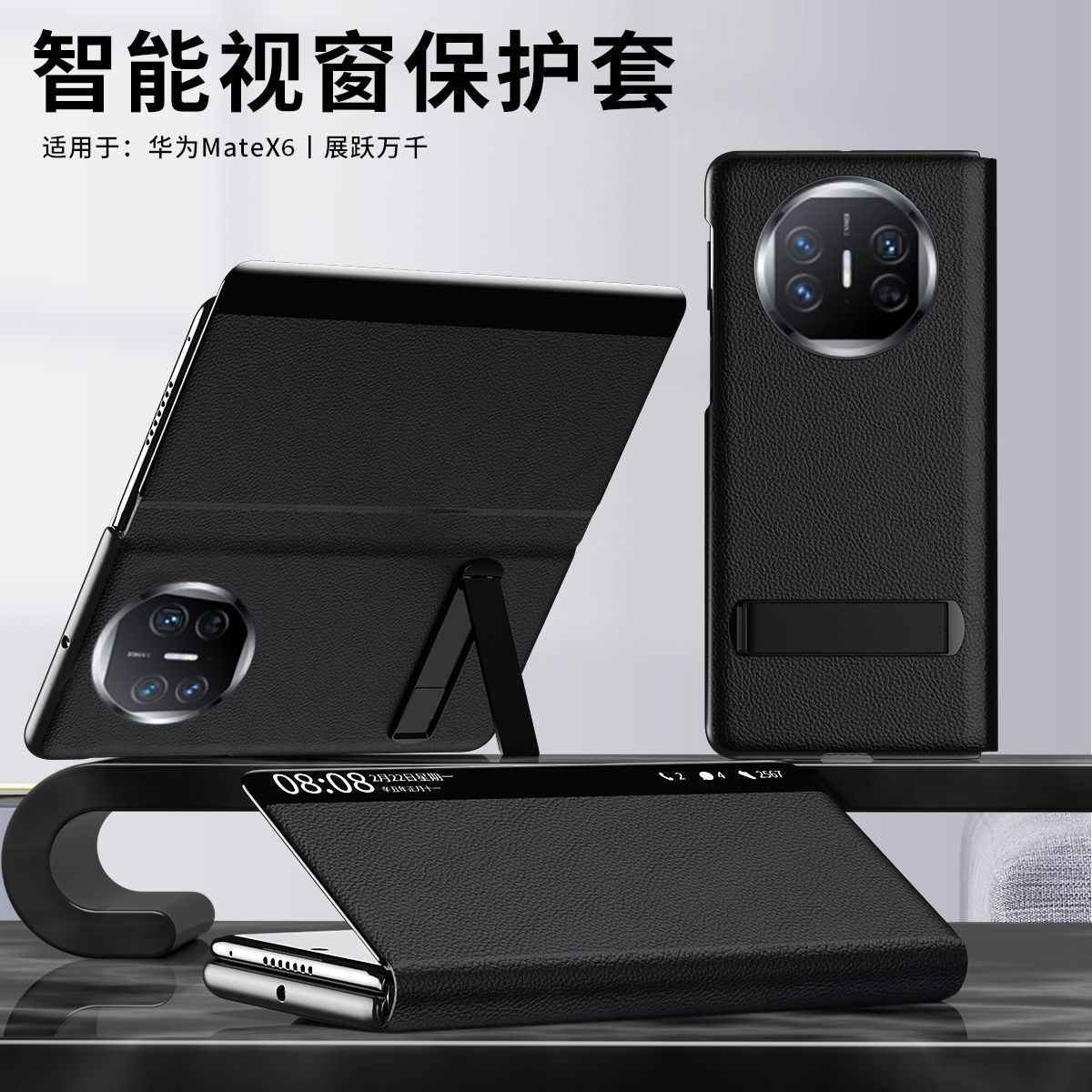 华为MateX6手机壳翻盖支架防摔真皮休眠视窗磁吸接听免翻皮套