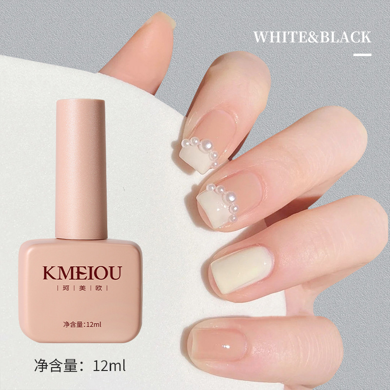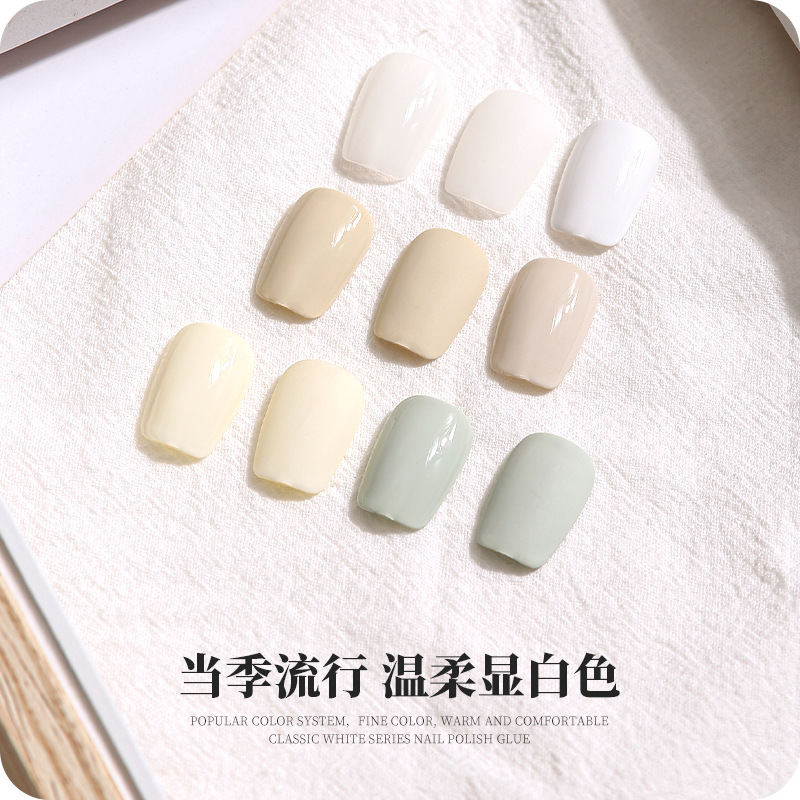 美甲白色甲油胶纯白纯黑透黑色米白酸奶白新款流行显白