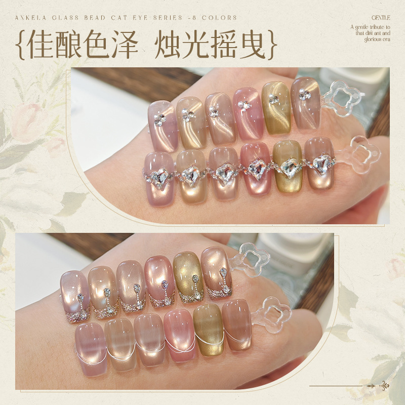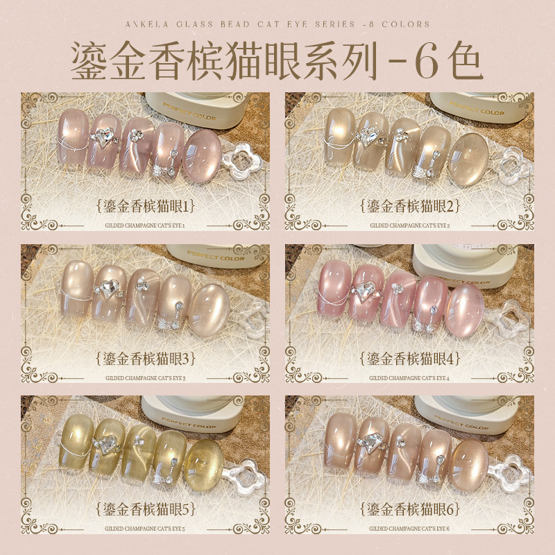 香槟金色 猫眼胶美甲专用金秋爆闪晶石玻璃珠鎏金猫眼指甲油胶