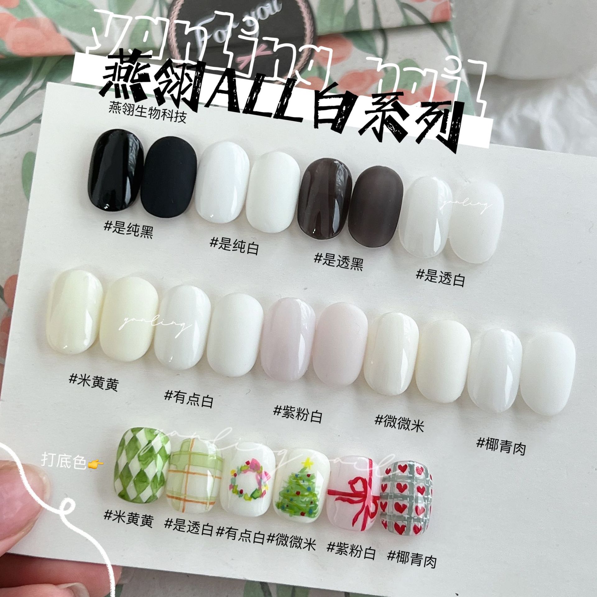 燕翎白系列甲油胶米白蛋白乳白纯黑纯白透白色透黑色美甲胶