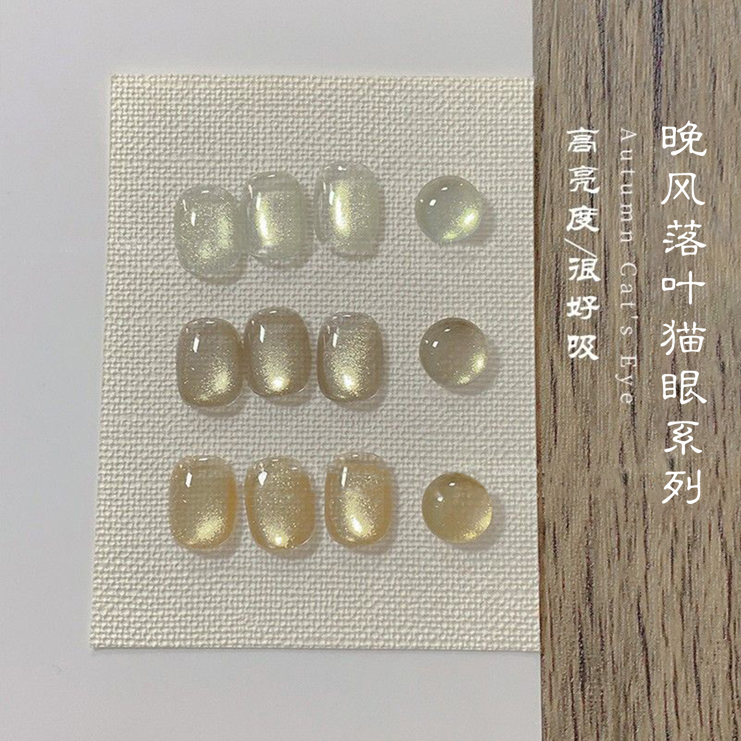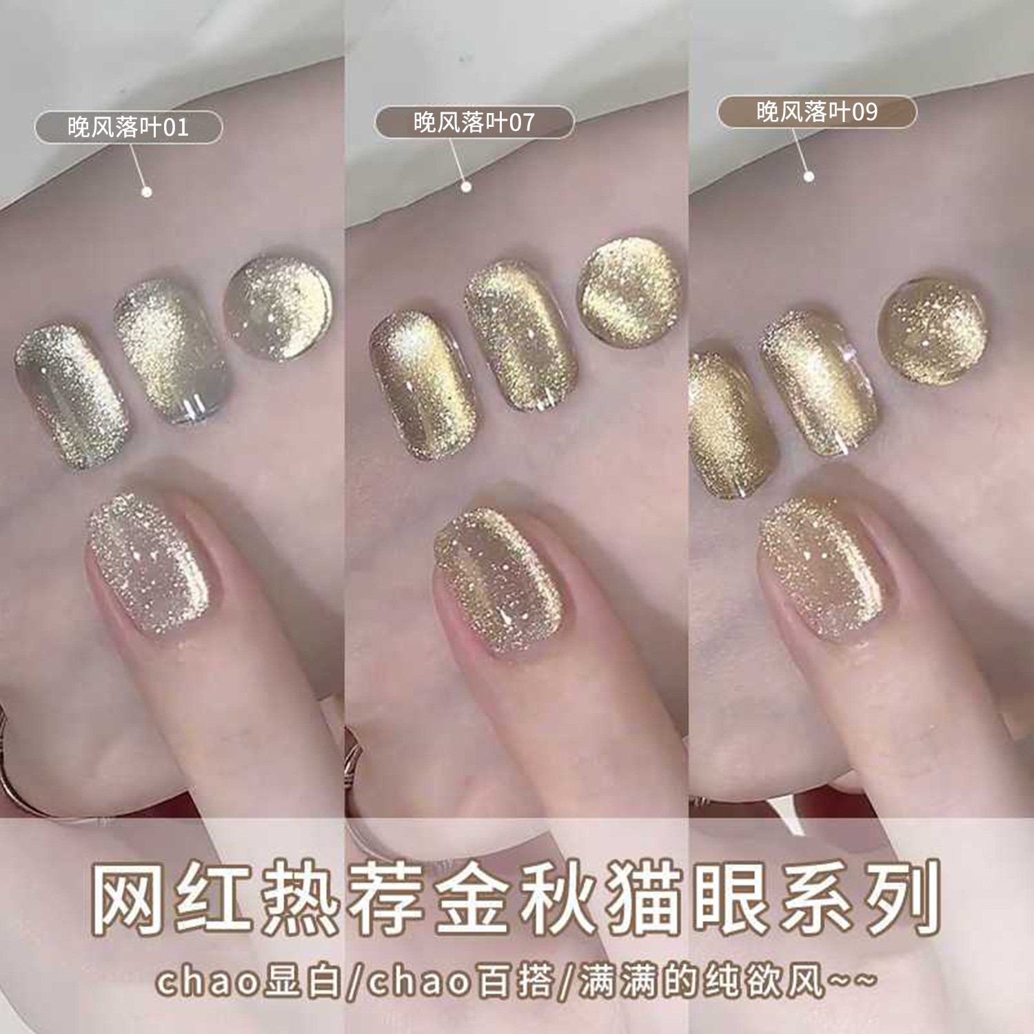 金秋晚枫落叶猫眼甲油胶秋冬款瓷白爆闪流行闪亮吸睛光疗胶美甲店
