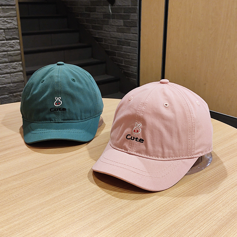春夏韩版甜美可爱兔子刺绣短檐棒球帽女春夏百搭纯棉鸭舌帽ins潮