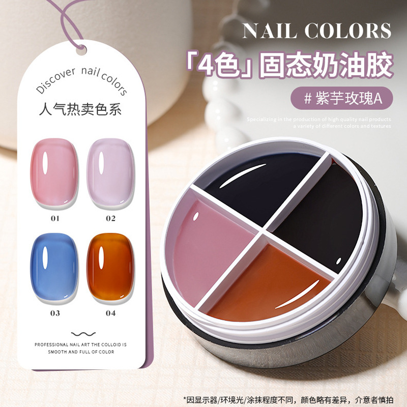 光疗指甲油胶年新款裸色冰透罐装四色固态甲油胶眼影盘套