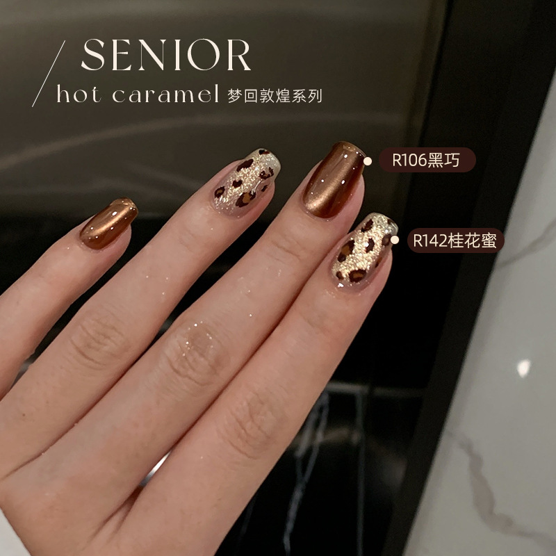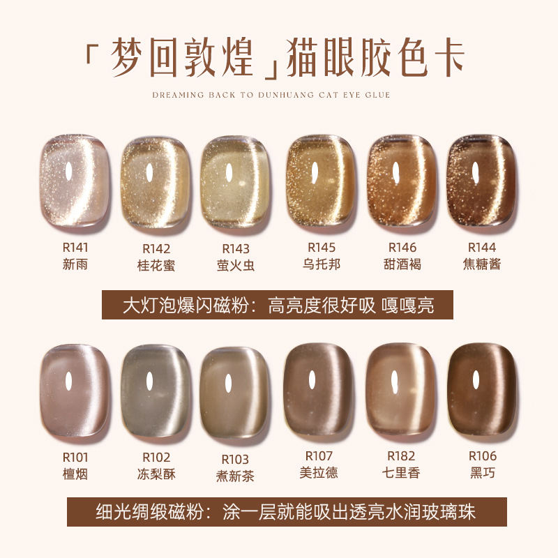 美甲猫眼甲油胶焦糖色棕咖色裸色敦煌秋冬美拉德玻璃珠晶石猫眼胶