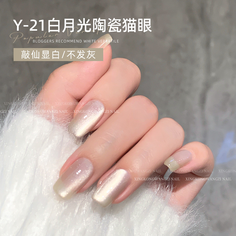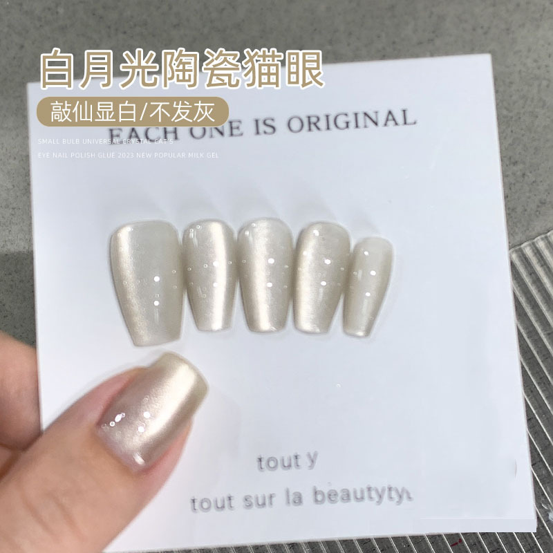 白月光陶瓷猫眼指甲油胶秋冬新款爆闪晶石瓷白猫眼胶