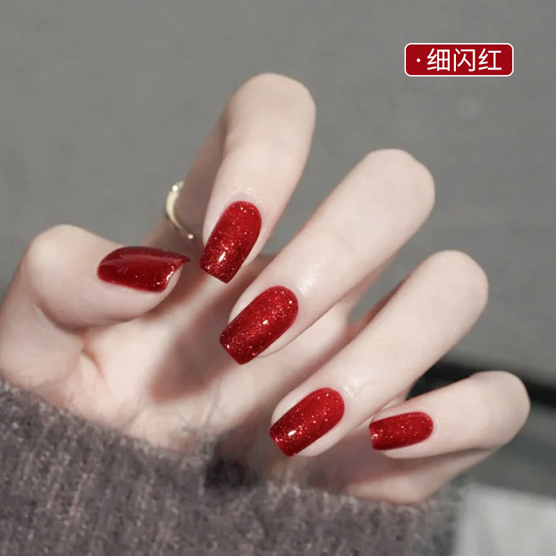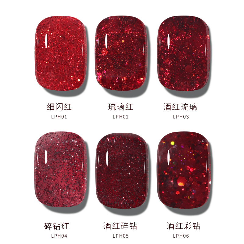 爆闪红钻甲油胶铂金亮片碎钻胶酒红色车厘子显白指甲胶专业
