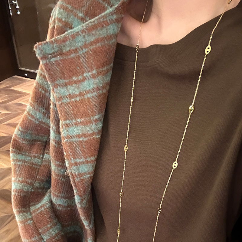 长款钛钢不掉色双层叠戴猪鼻子项链女个性气质轻奢简约
