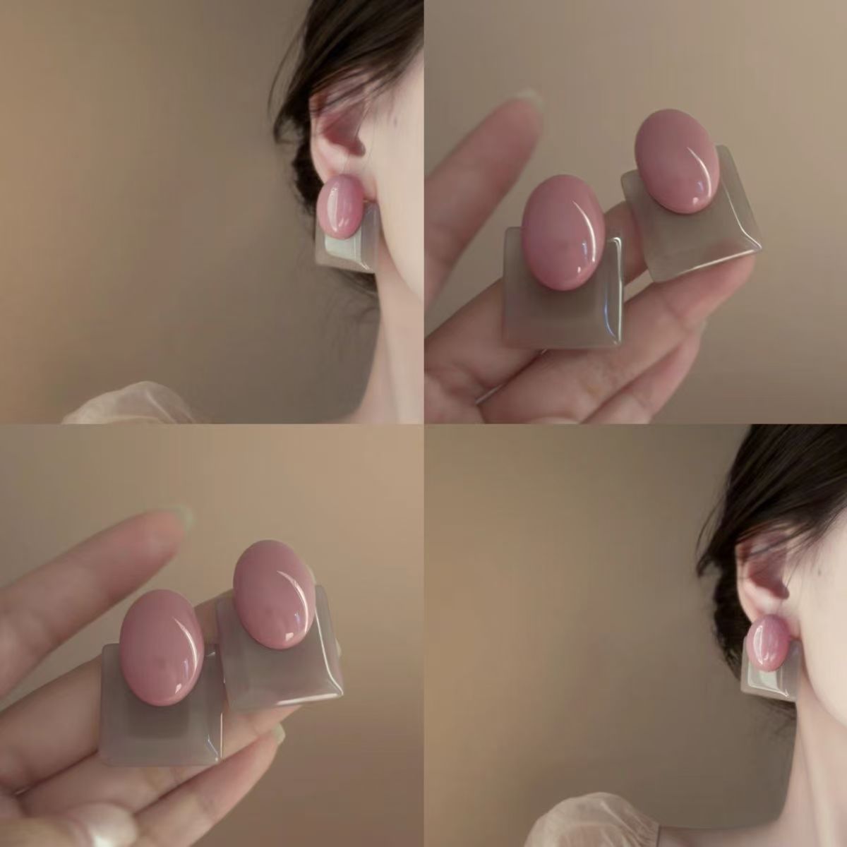 枯木玫瑰粉 小众设计法式复古树脂撞色方形耳环 高级感仙气质港风