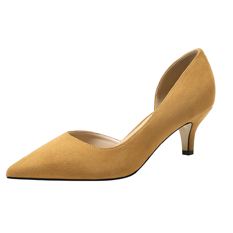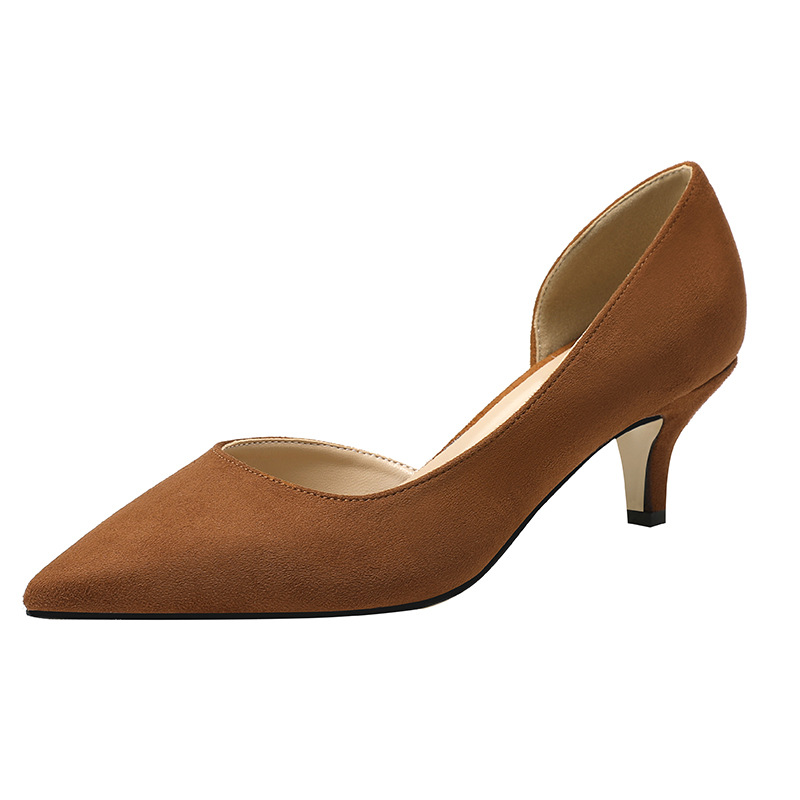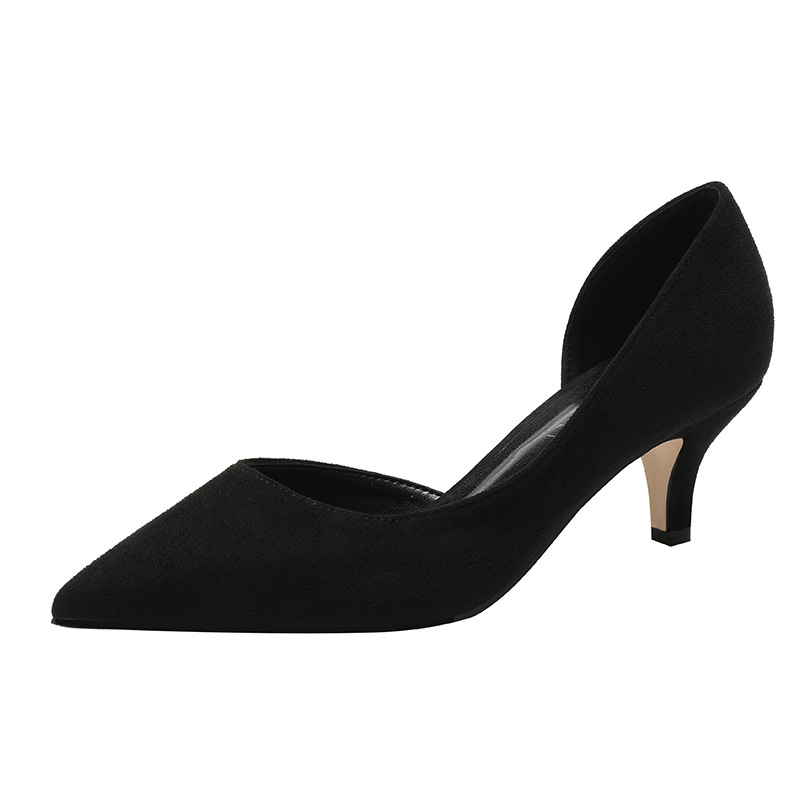 新款尖头低跟浅口职业女侧空单鞋绒面中跟性感豹纹高跟工作鞋