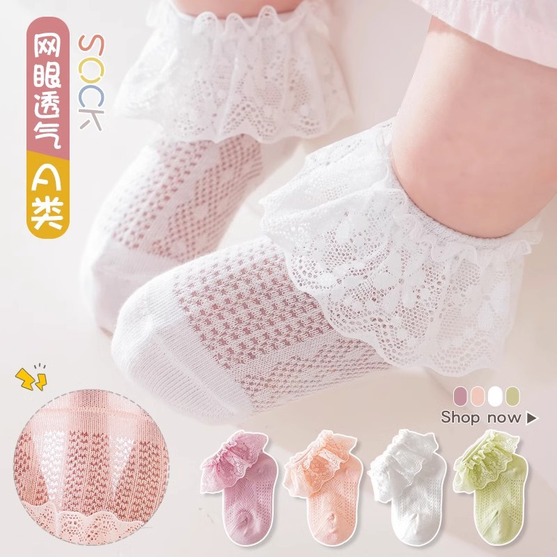 婴儿宝宝袜子夏季薄款精梳棉透气蕾丝女童婴儿公主舞蹈袜花边