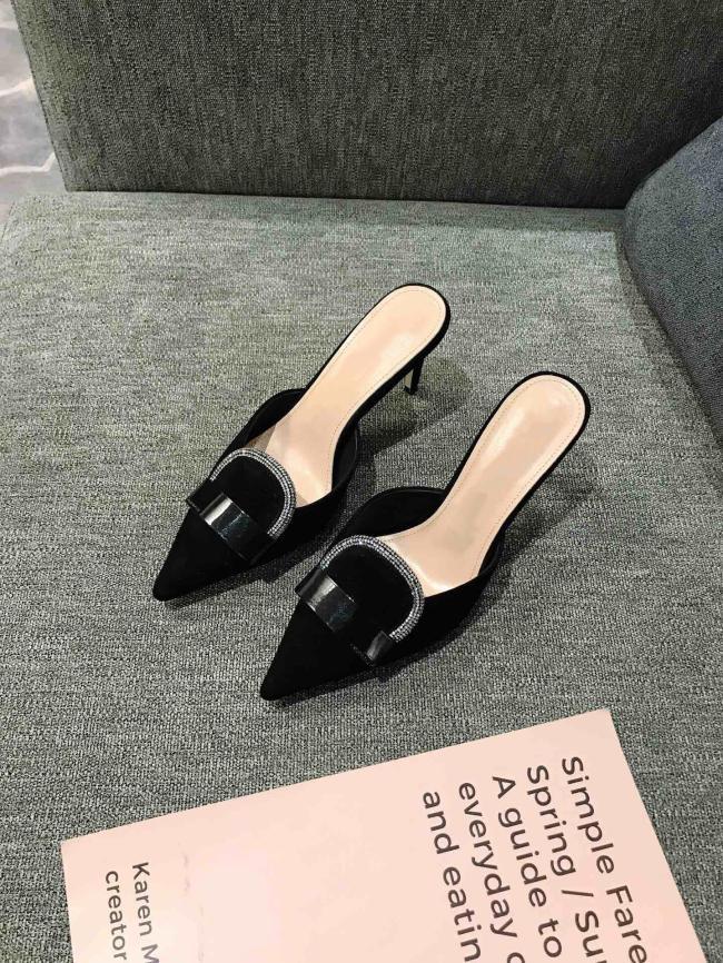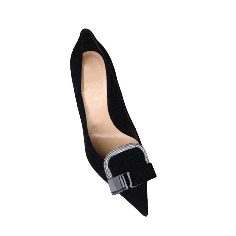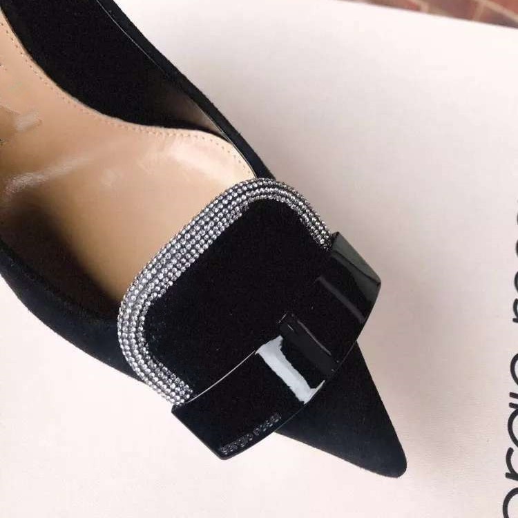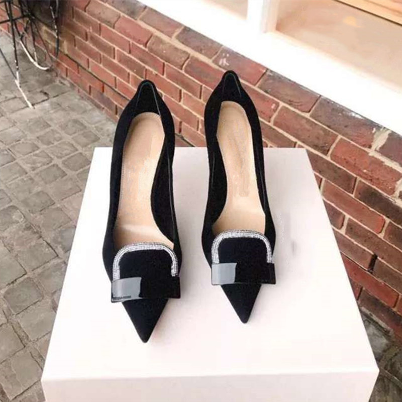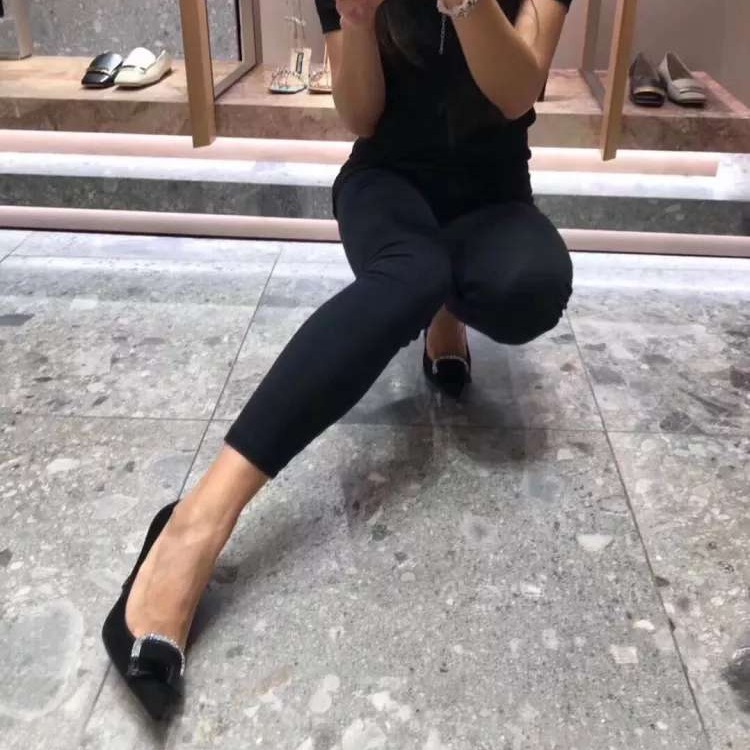 春秋季新款少女网红水钻高跟鞋女细跟尖头性感黑色大小码工作单鞋