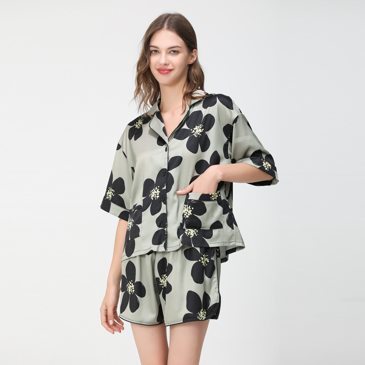 冰丝睡衣女夏季短袖短裤两件套时尚可外穿套装新款丝绸家居服薄款