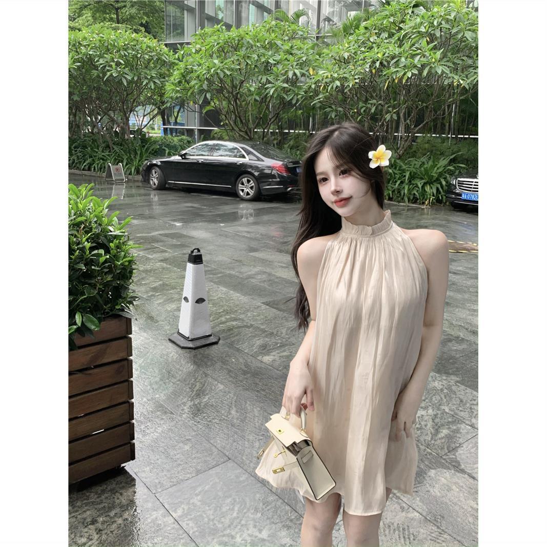 纯欲高级感挂脖连衣裙女装夏季法式甜辣妹宽松气质无袖a字短裙子