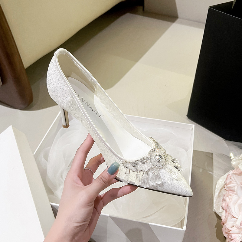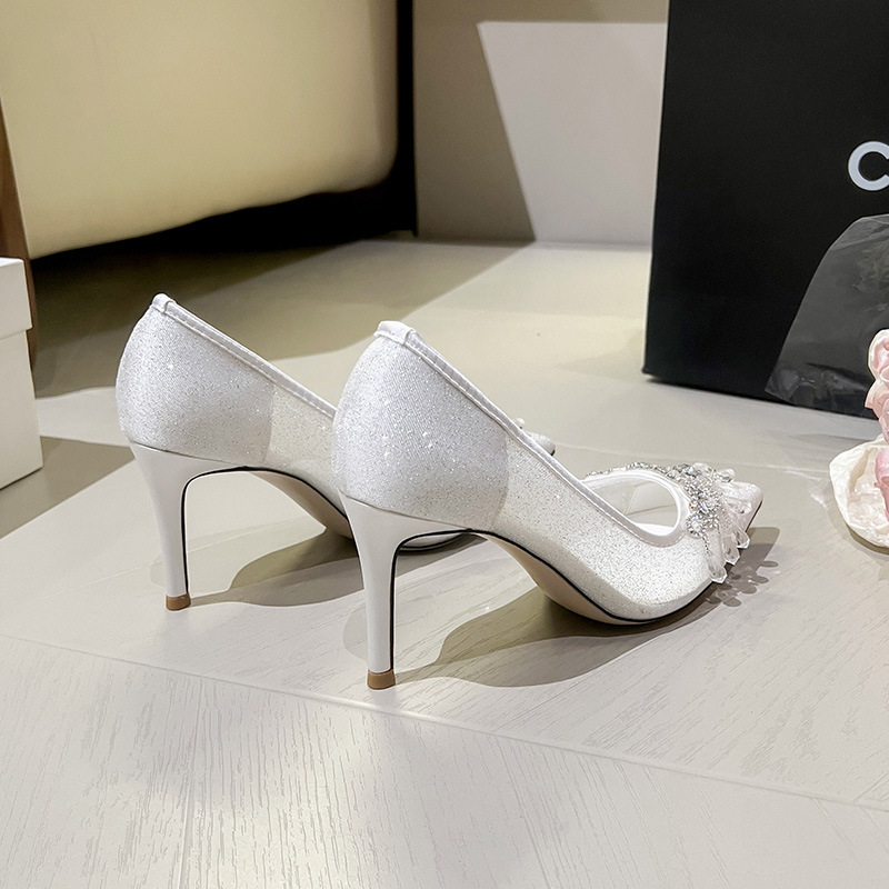 新款法式婚鞋女网纱水钻主婚纱鞋夏季透气新娘礼服高跟女单鞋