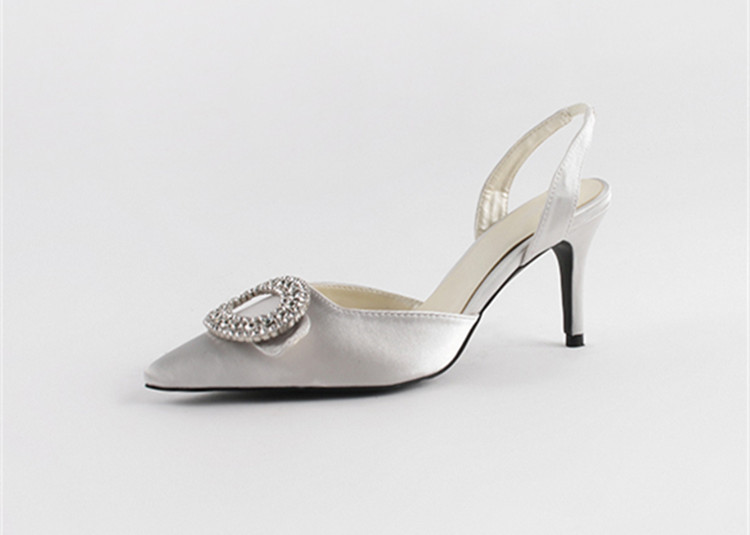 新款韩版时尚尖头单鞋女中跟细跟性感水钻后空一字带高跟鞋