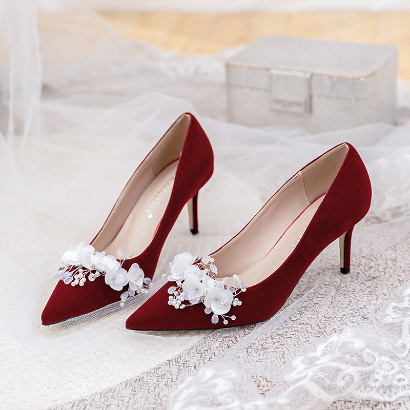 结婚鞋女主婚纱白色高跟鞋酒红色秀禾新娘鞋中跟大码单鞋
