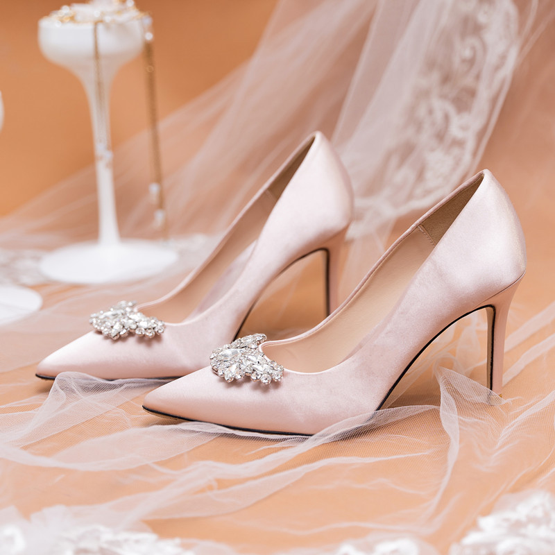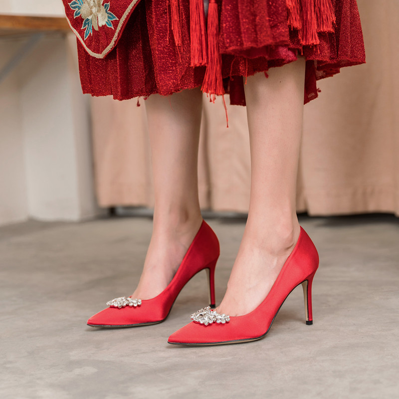 婚鞋新款法式白色主婚纱鞋香槟礼服伴娘高跟红色秀禾新娘鞋