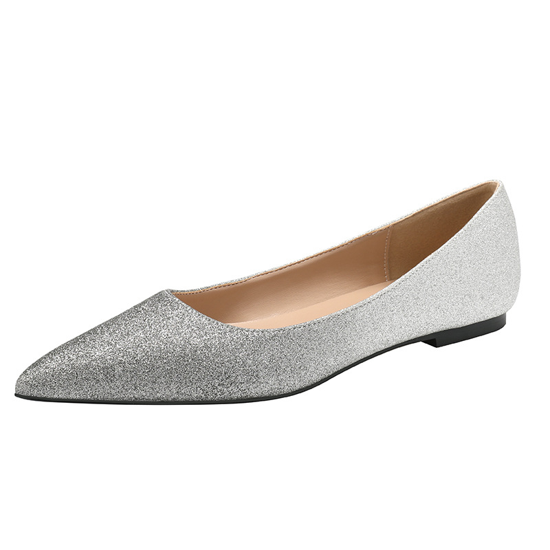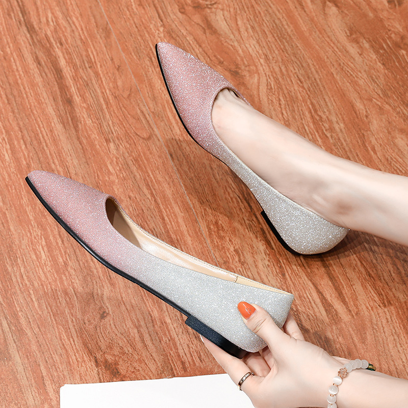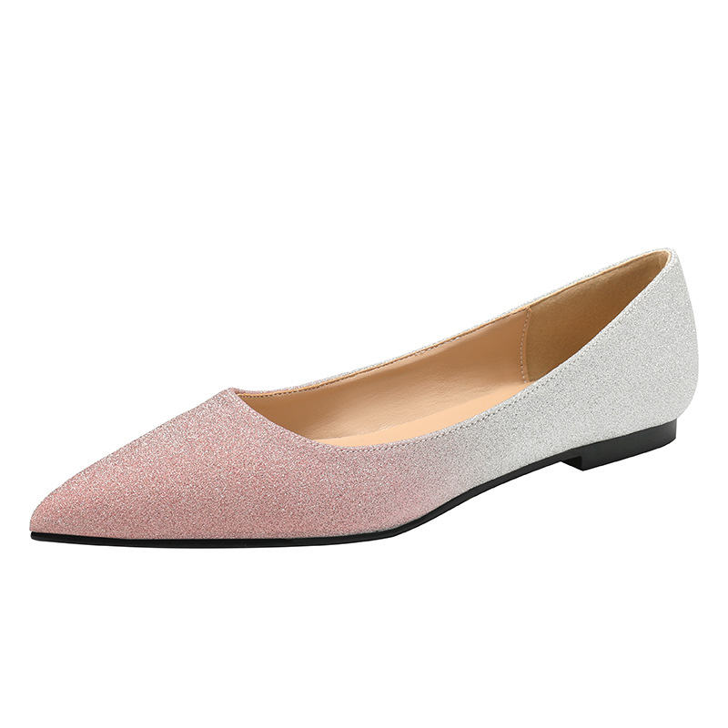 韩版新款尖头浅口亮片平底单鞋渐变色平跟外贸大码鞋42 43