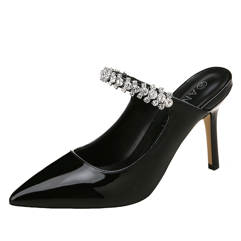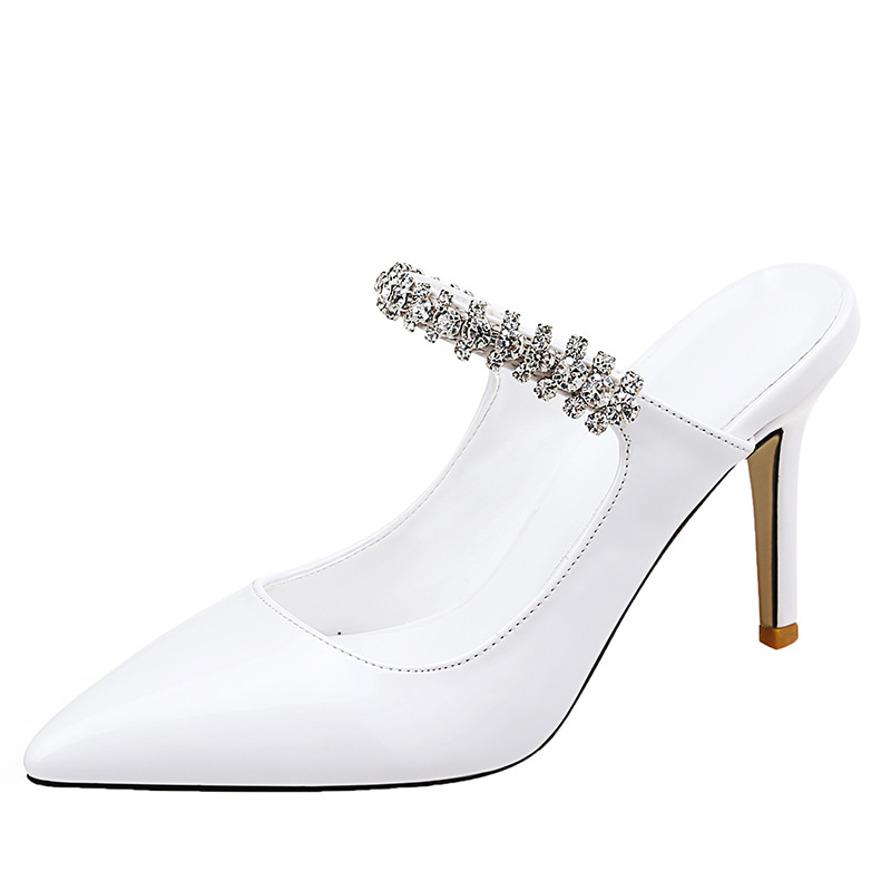 欧美新款尖头水钻高跟鞋性感后空白色单鞋细跟大码42 43包头凉鞋