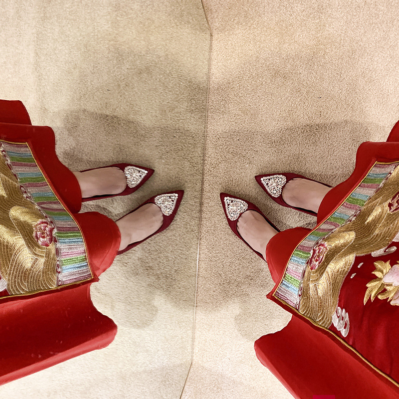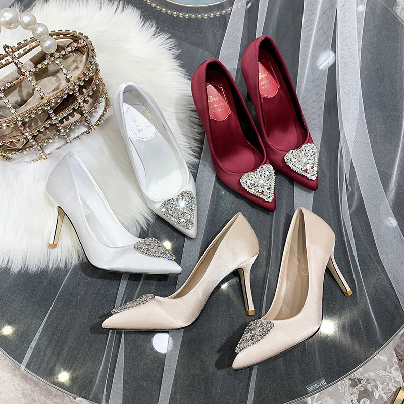 婚鞋女新款香槟金礼服伴娘高跟鞋水晶白色婚纱鞋酒红色秀禾鞋