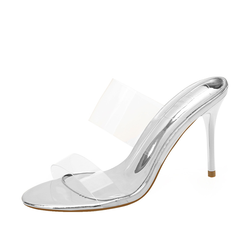 凉鞋女夏新款小清新高跟透明凉鞋女细跟露趾银色小码鞋313233