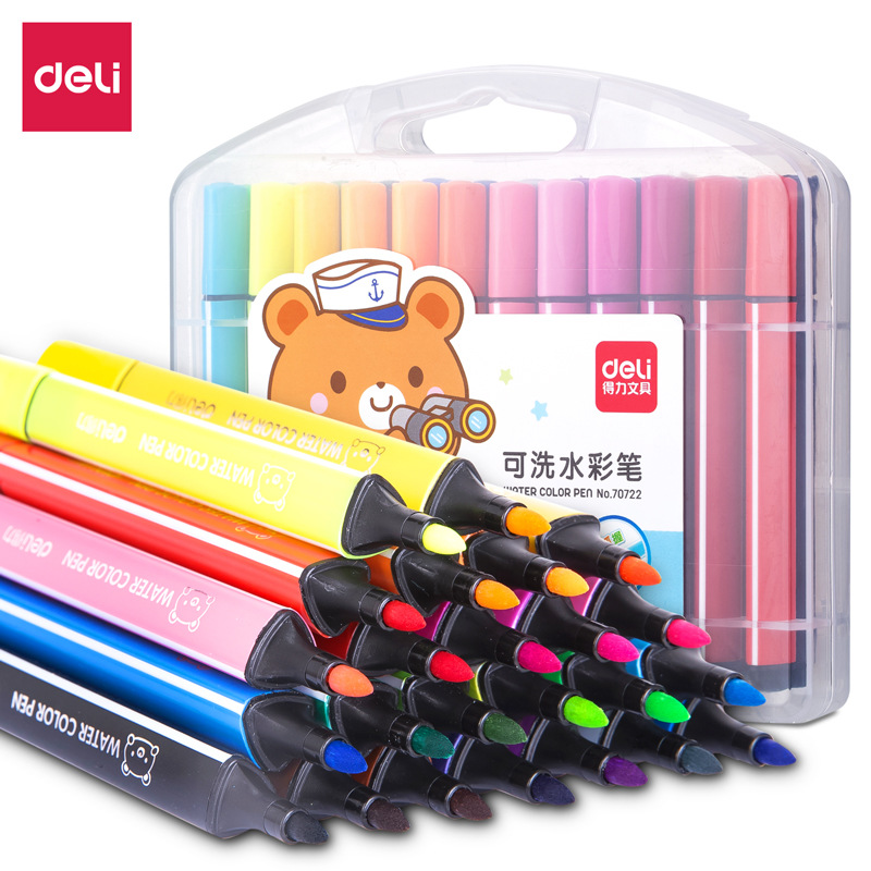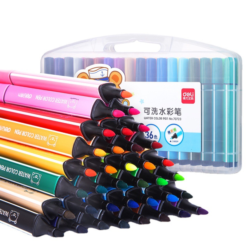 得力70722/70723可洗水彩笔学生儿童绘画三角杆彩色笔12/24/36色