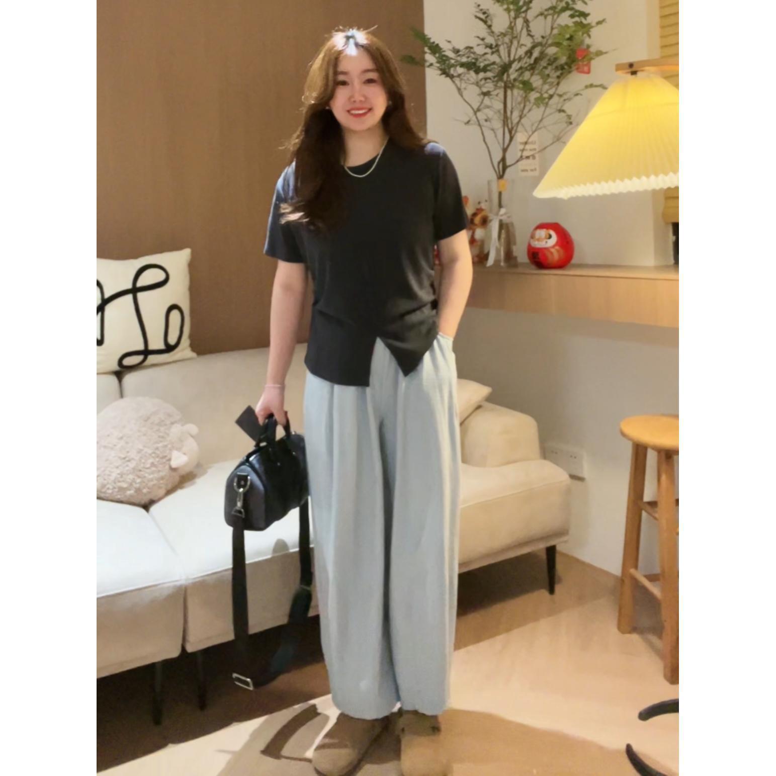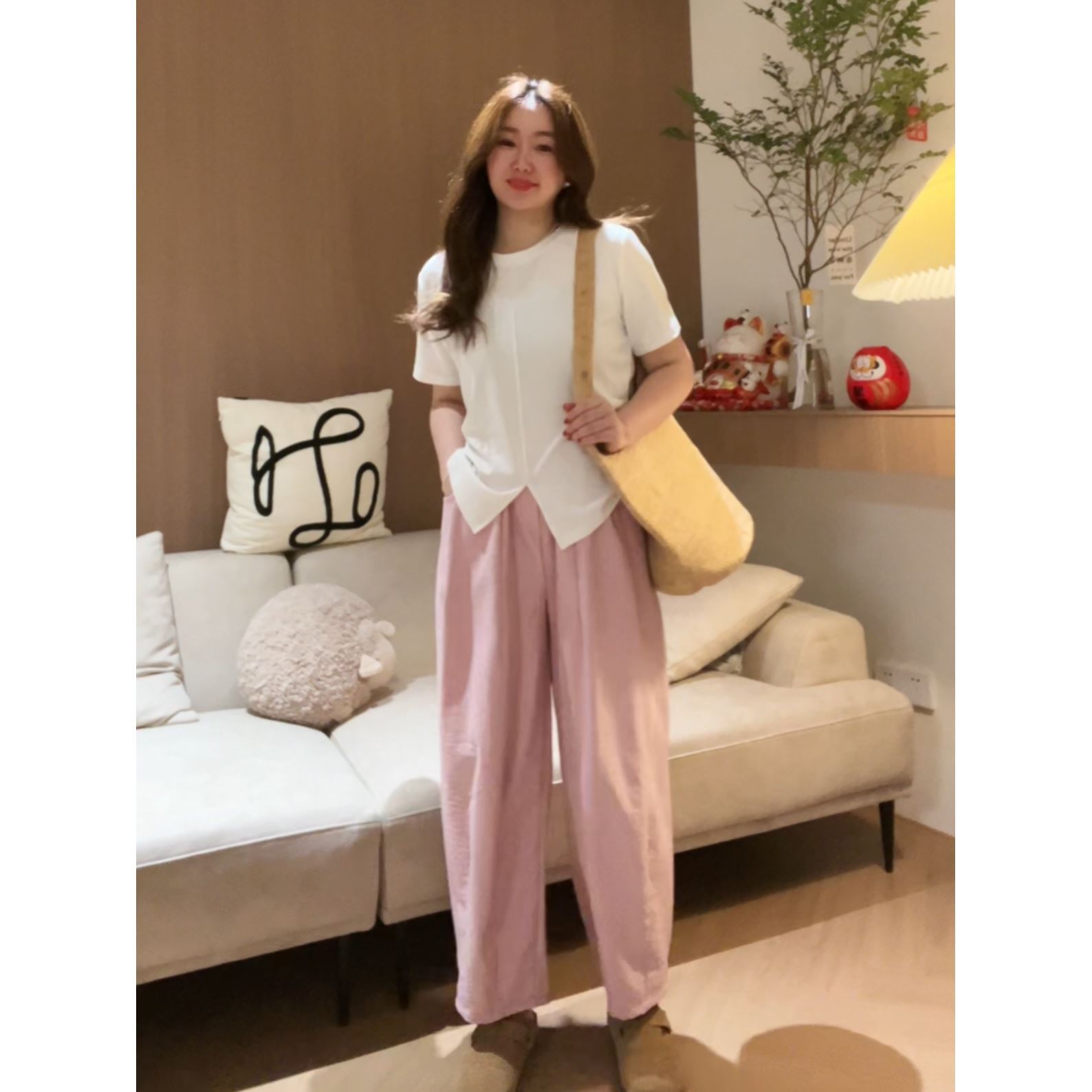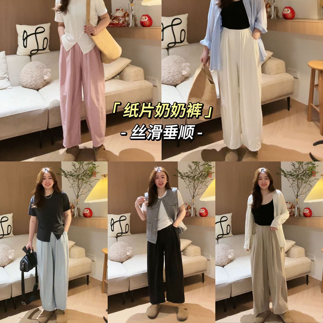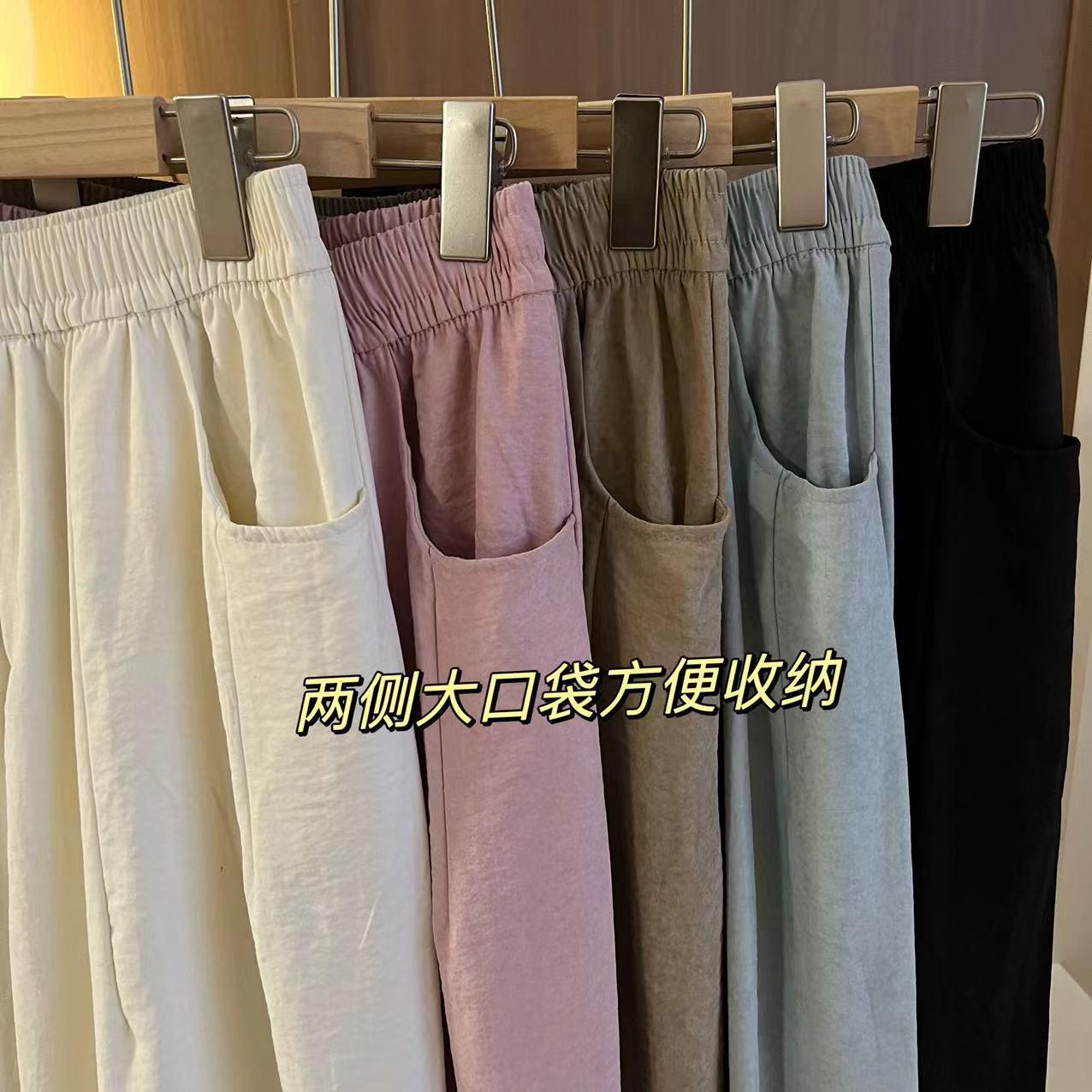 直播热卖纯色春夏百搭舒适透气九分裤女松紧腰休闲显瘦纸片奶奶裤