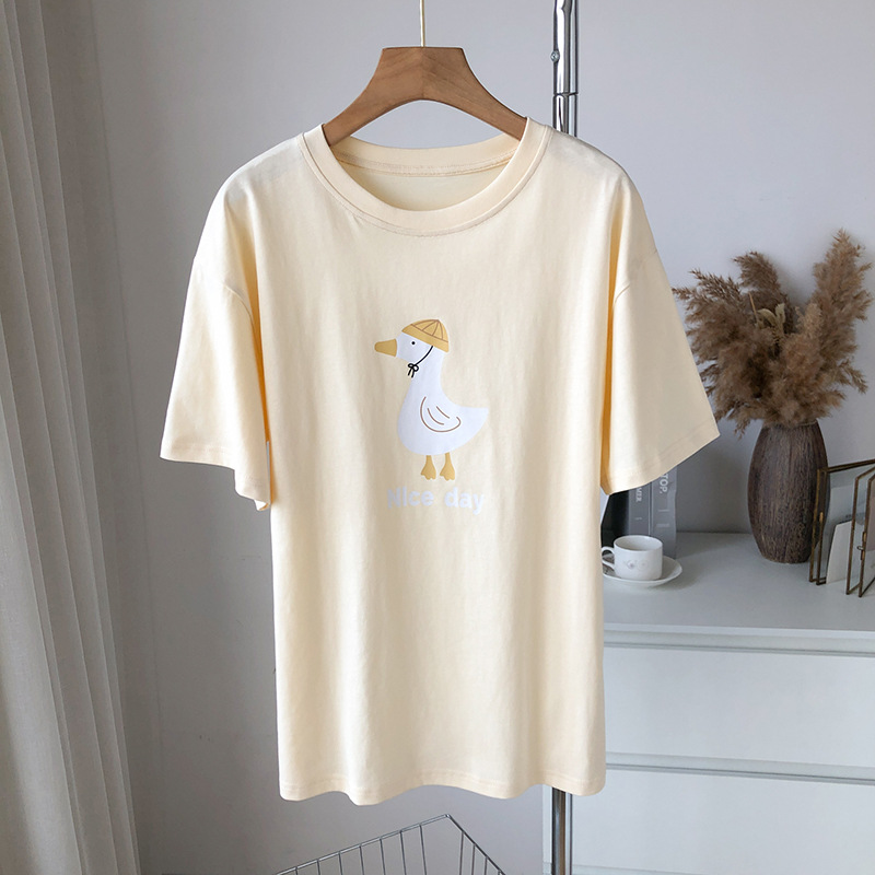 字母印花纯棉短袖T恤女ins潮年夏季小众百搭宽松显瘦体恤上衣