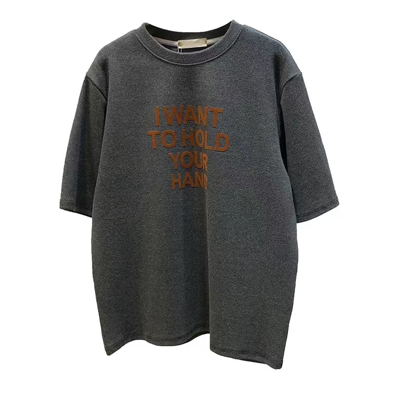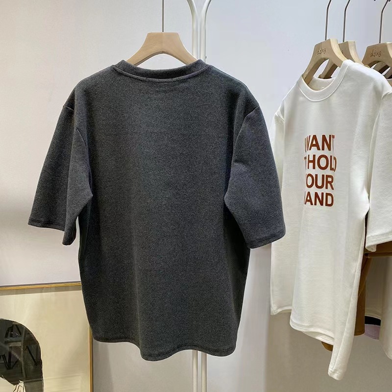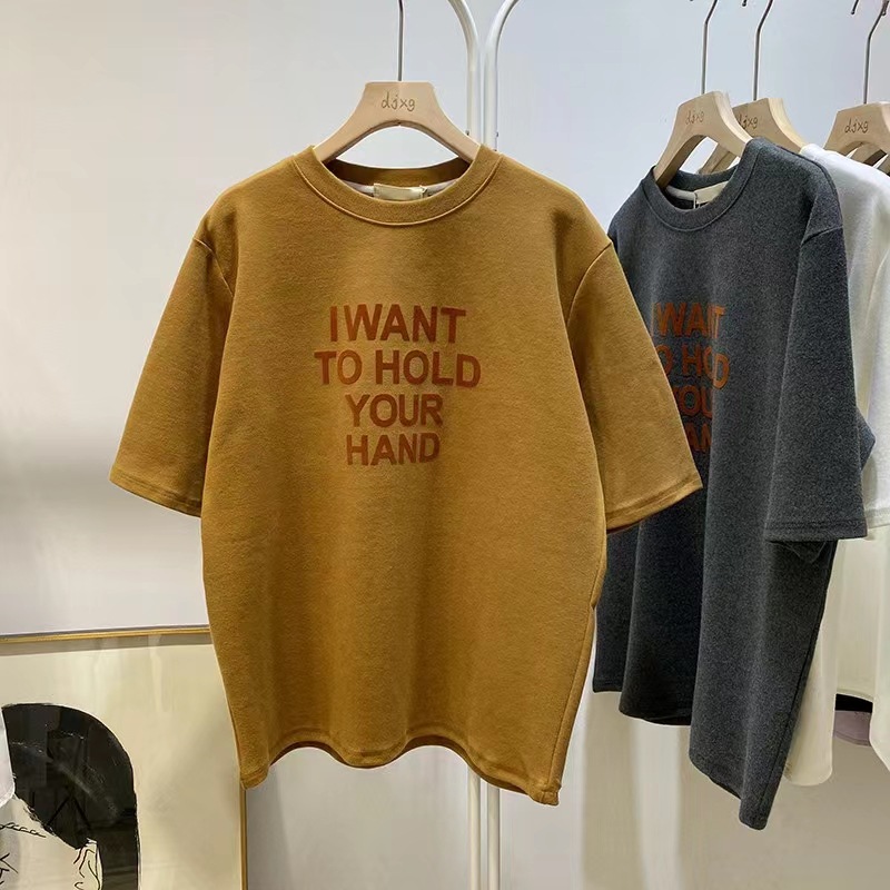 植绒字母磨毛棉短袖T恤女ins潮春装宽松休闲大码打底衫上衣