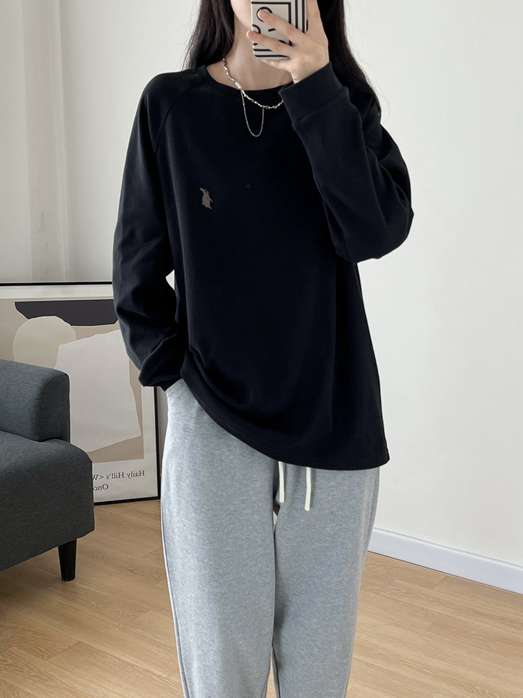 纯棉长袖t恤女春秋宽松大码中长款打底衫刺绣内搭上衣服