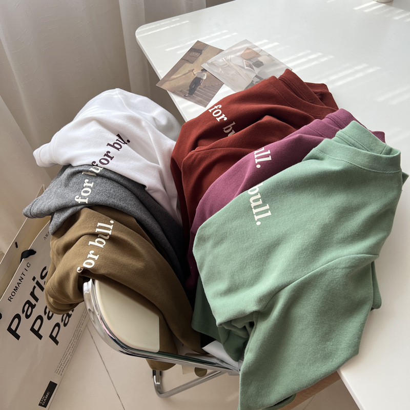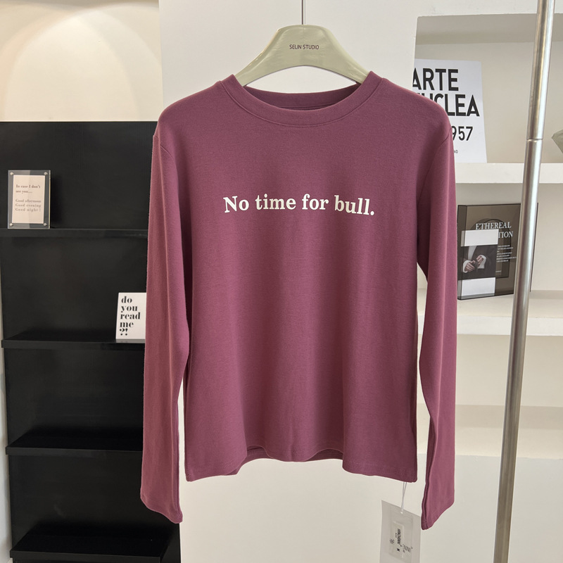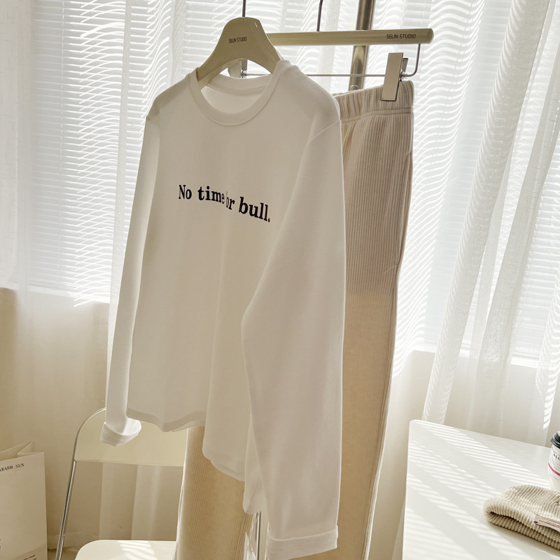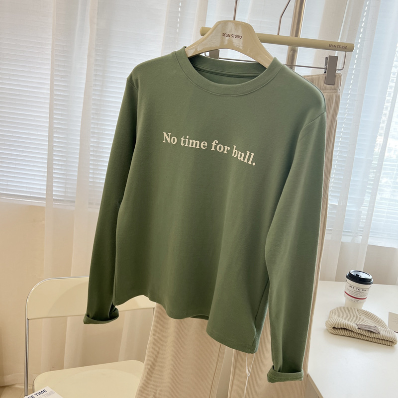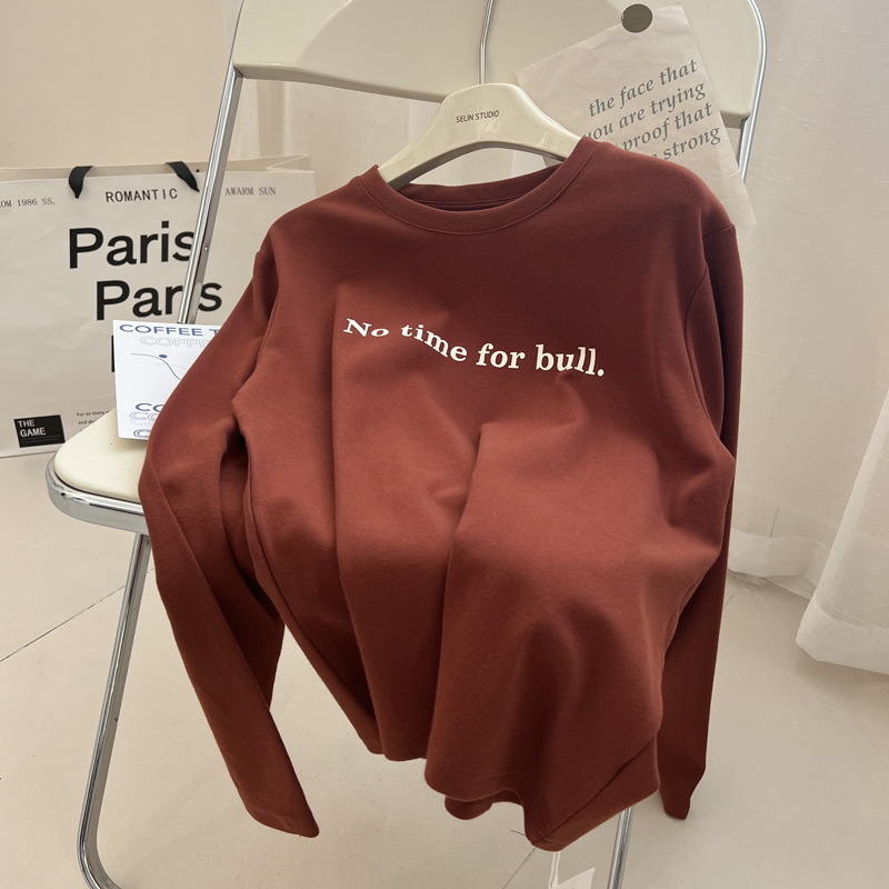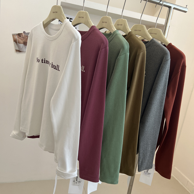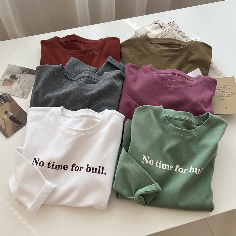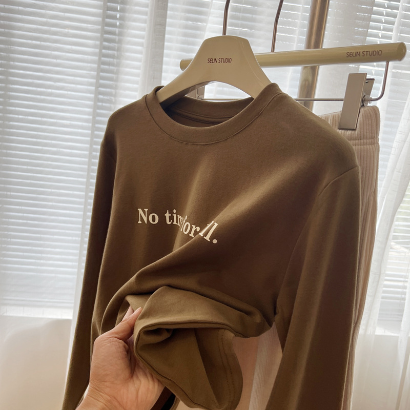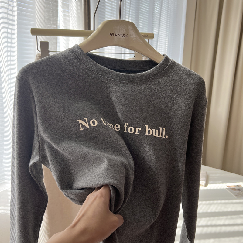韩版时髦百搭字母印花圆领长袖T恤女宽松加厚内搭磨毛打底衫秋冬