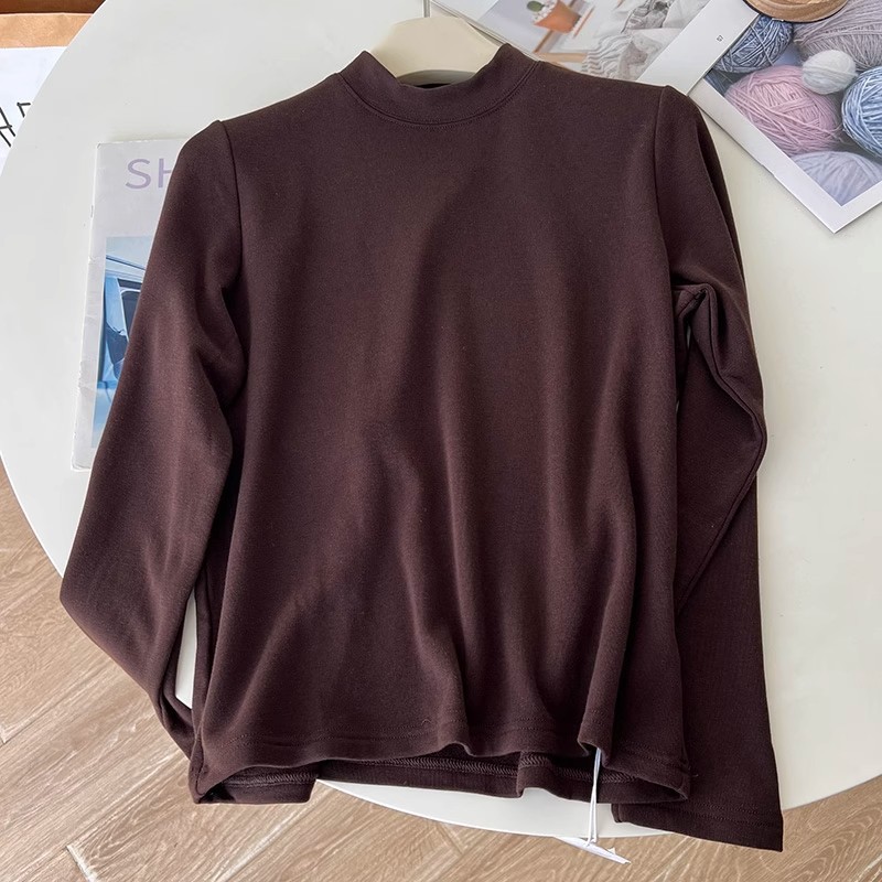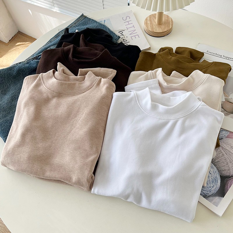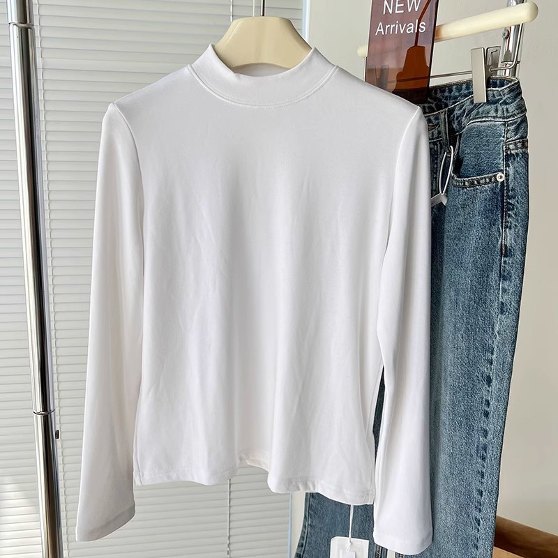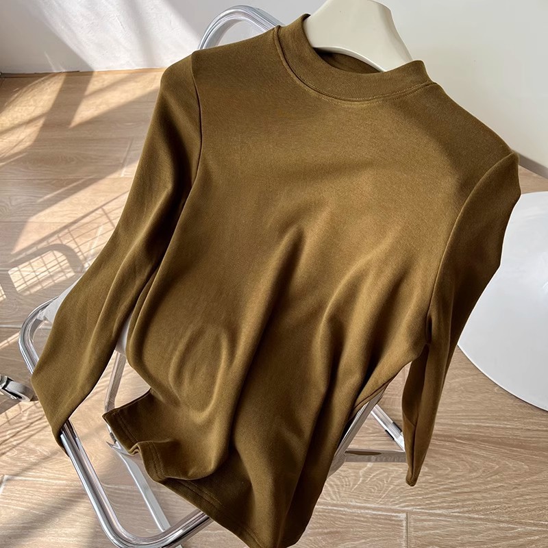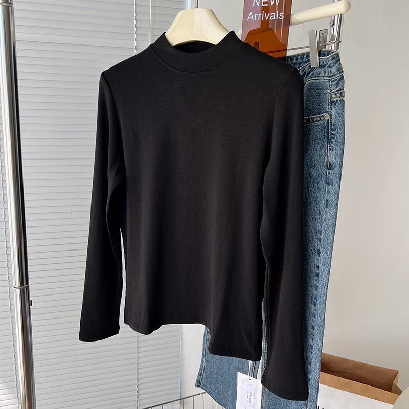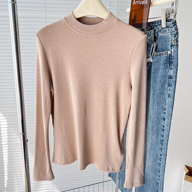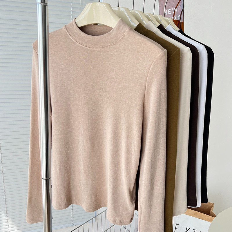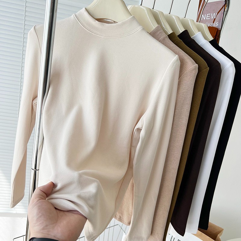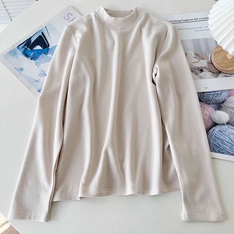 软糯舒适磨毛半高领打底衫秋冬弹力显瘦立领长袖T恤内搭保暖上衣