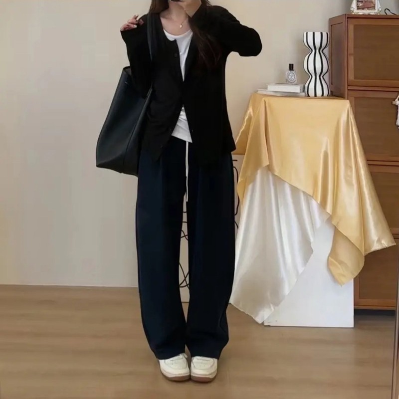 女装新款牛仔裤高腰开叉直筒女春夏薄款显瘦宽松阔腿裤垂女装