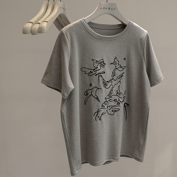 2025夏季新款纯棉灰色短袖t恤女宽松百搭休闲时尚减龄小个子上衣