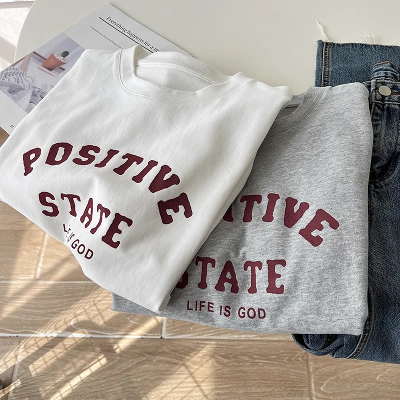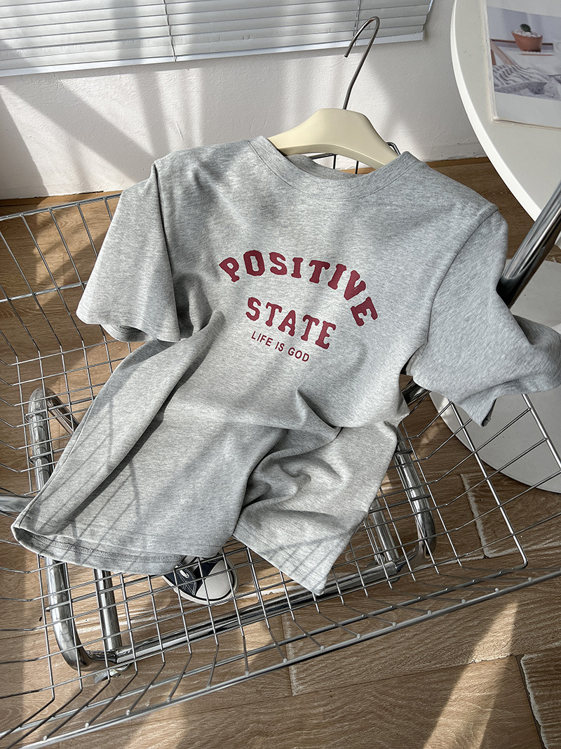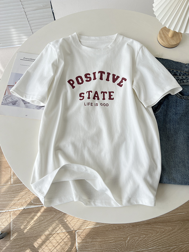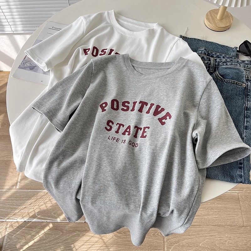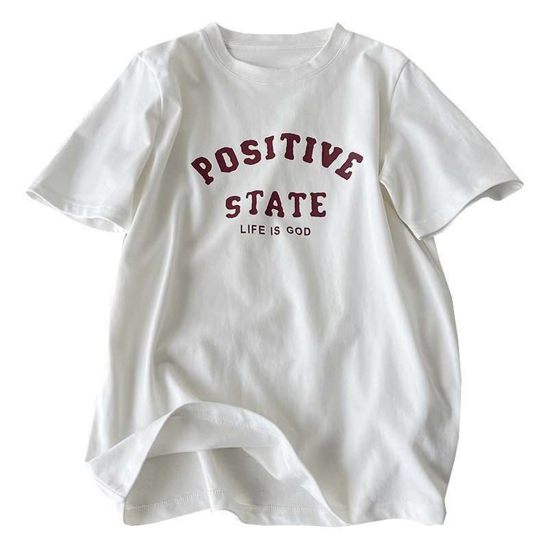 简约大版字母印花圆领短袖t恤女春夏宽松运动休闲半袖上衣打底衫
