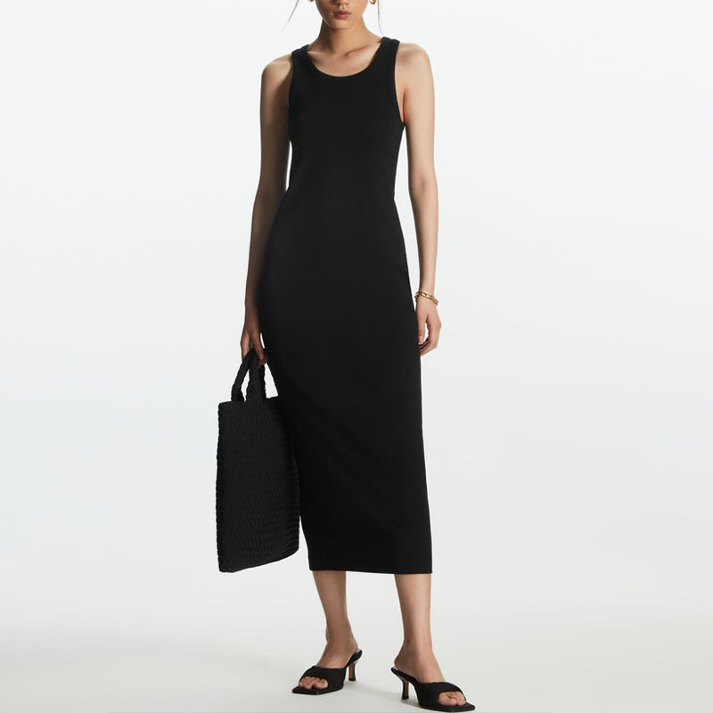 cos play风新品修身圆领小黑裙高个子显瘦针织连衣长裙女
