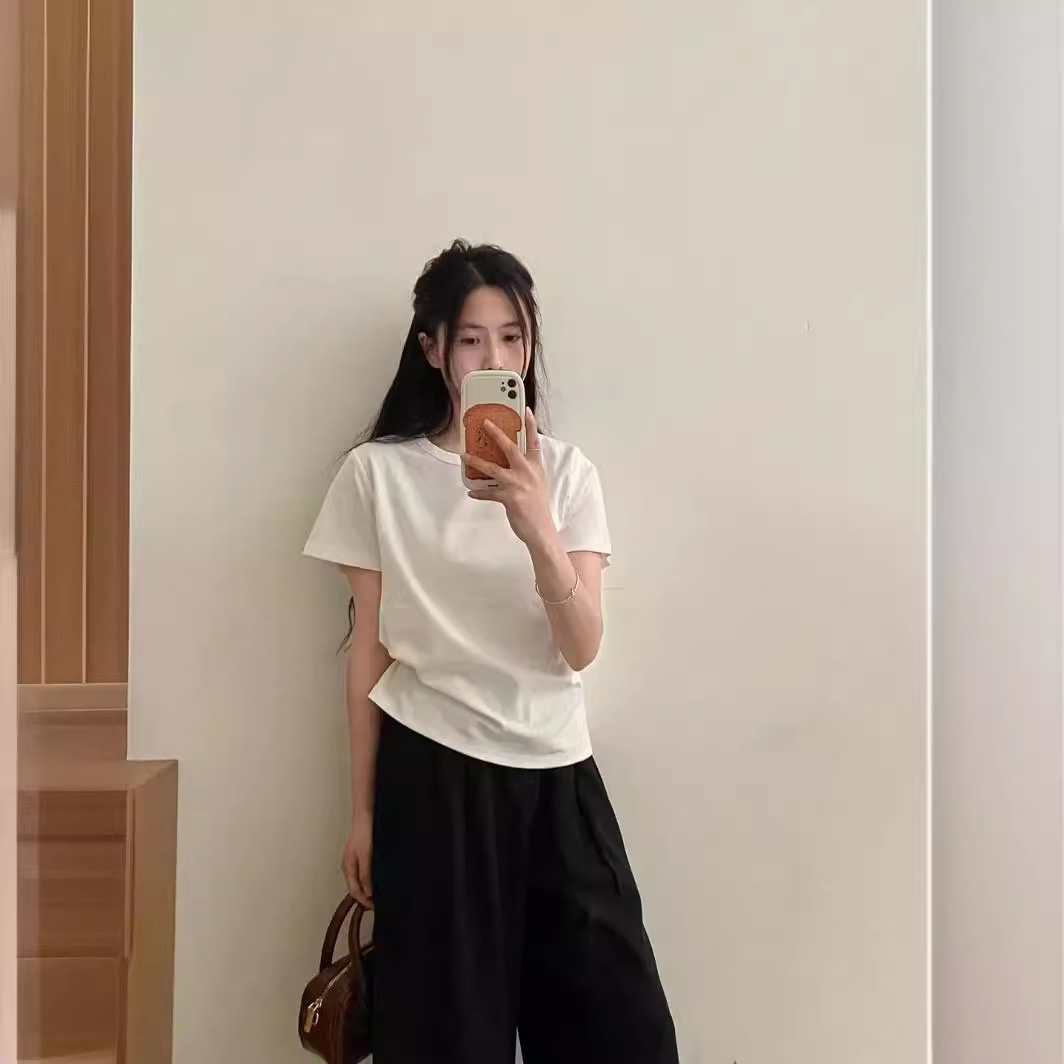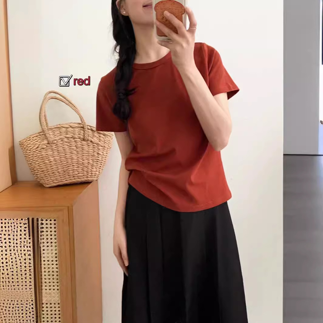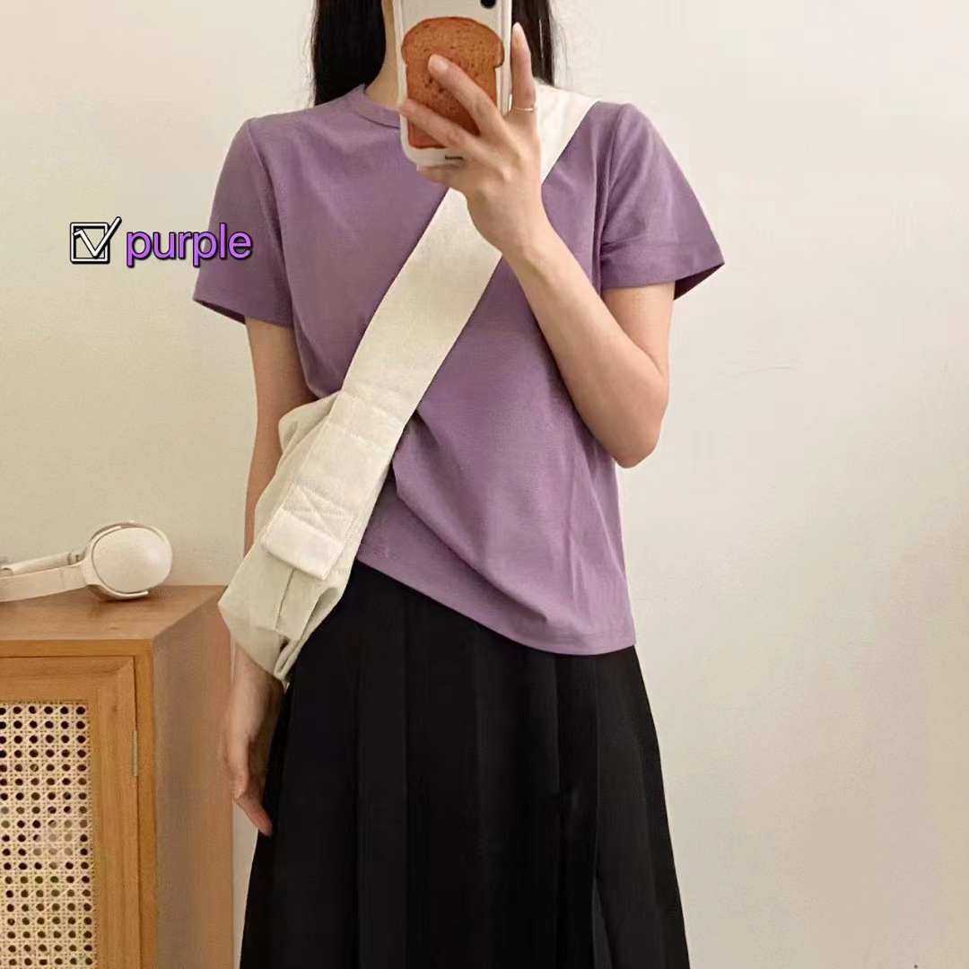 韩代夏季新款圆领套头百搭糖果色显瘦纯棉短袖T恤女上衣服