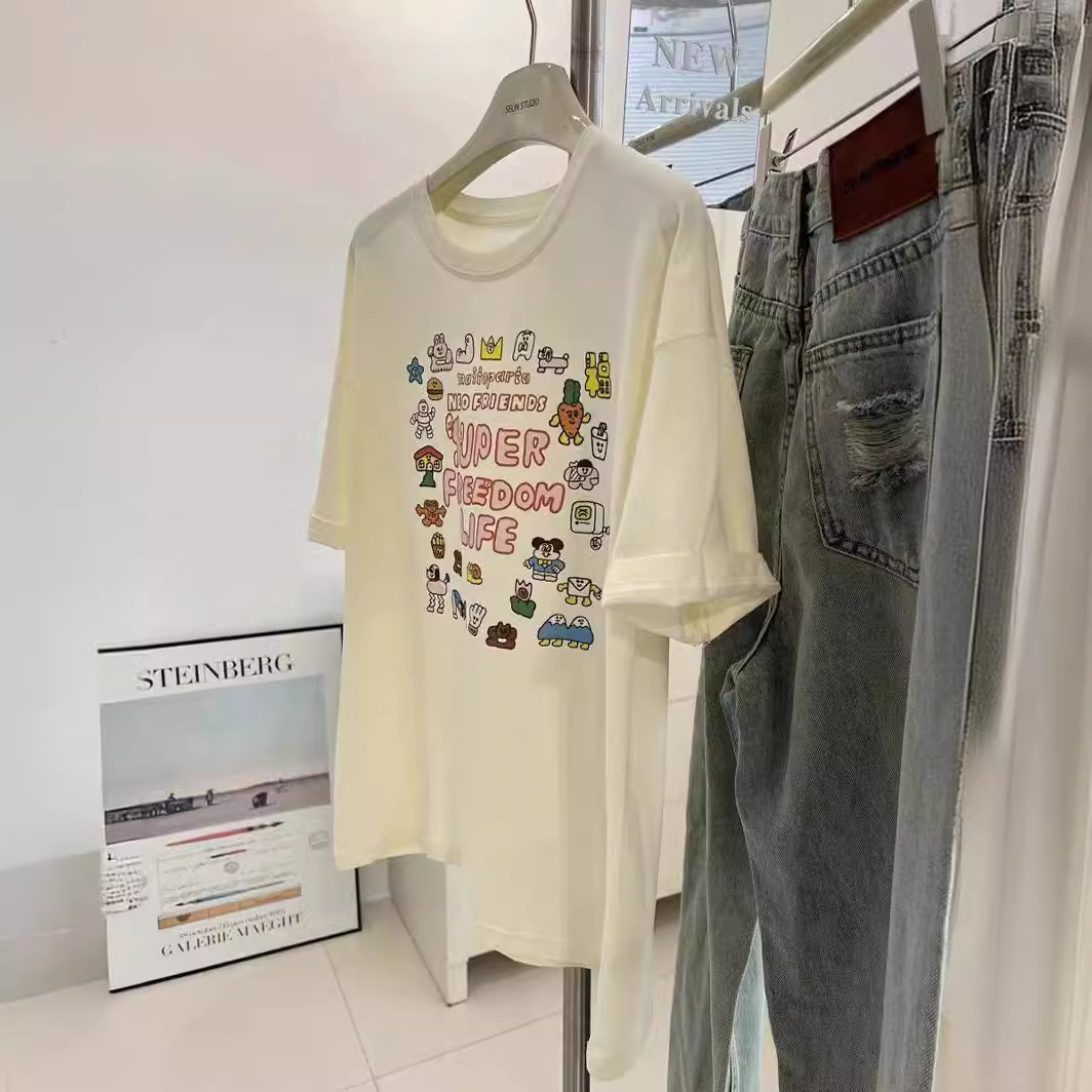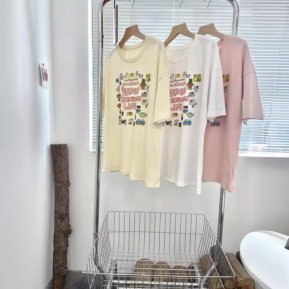 韩版可爱卡通印花圆领短袖t恤女宽松慵懒显瘦春夏减龄上衣潮