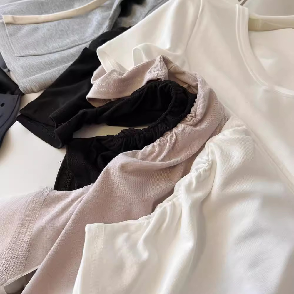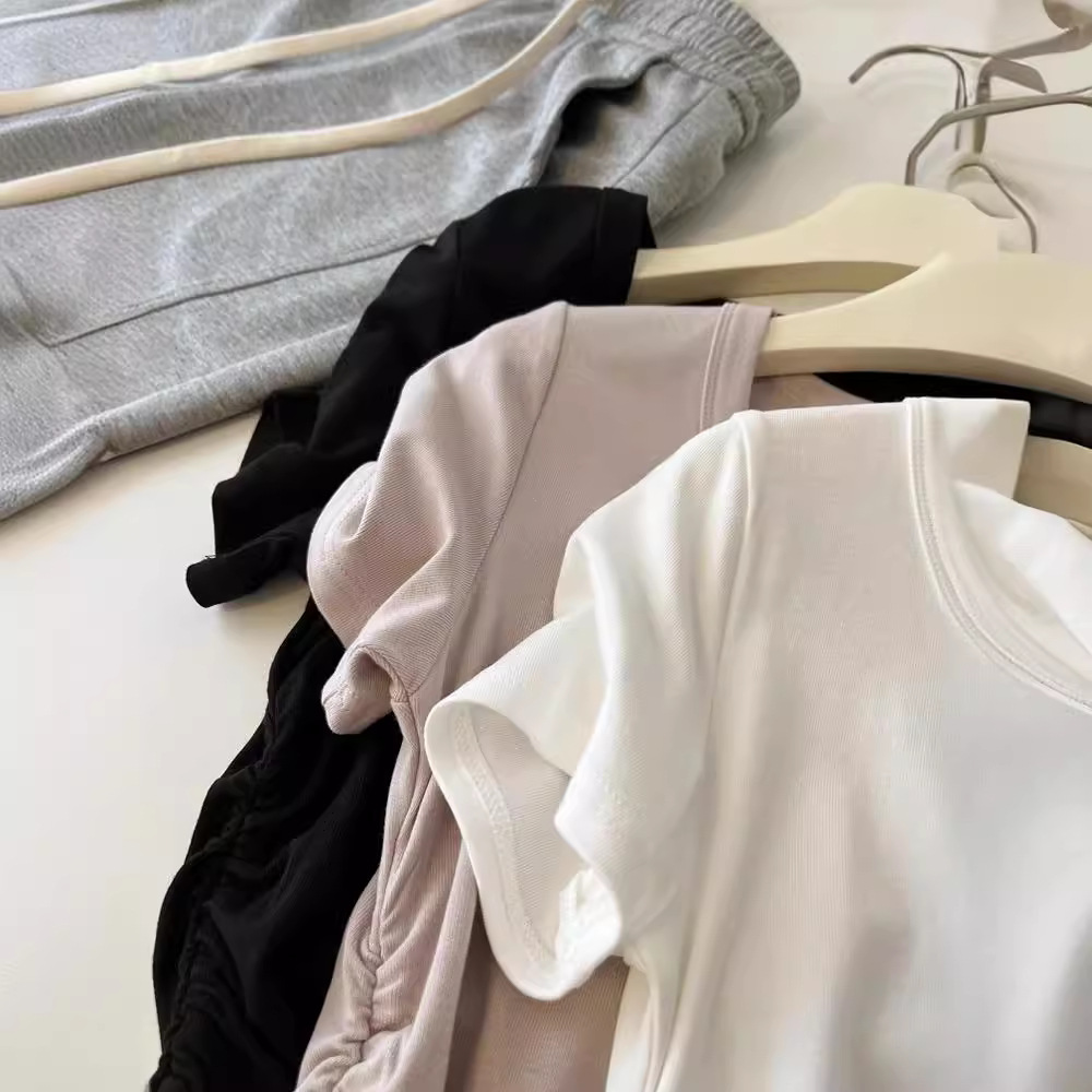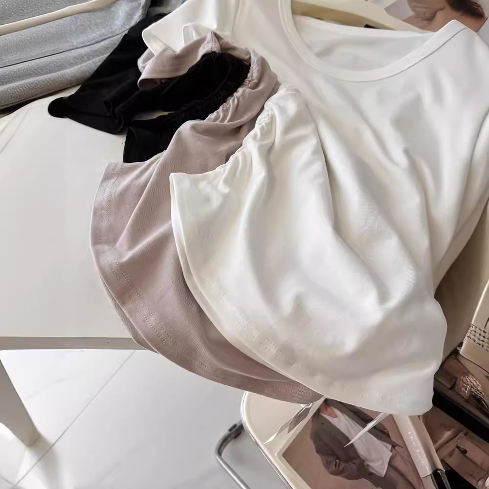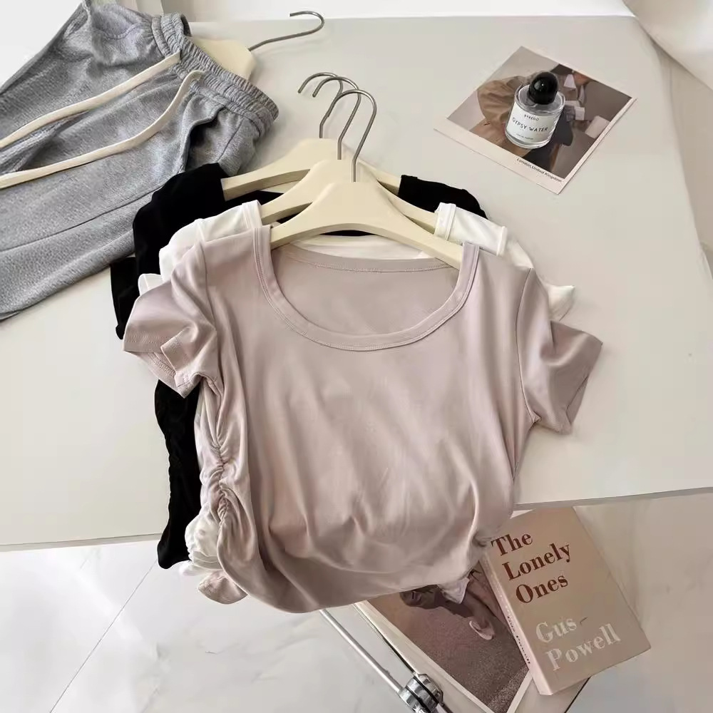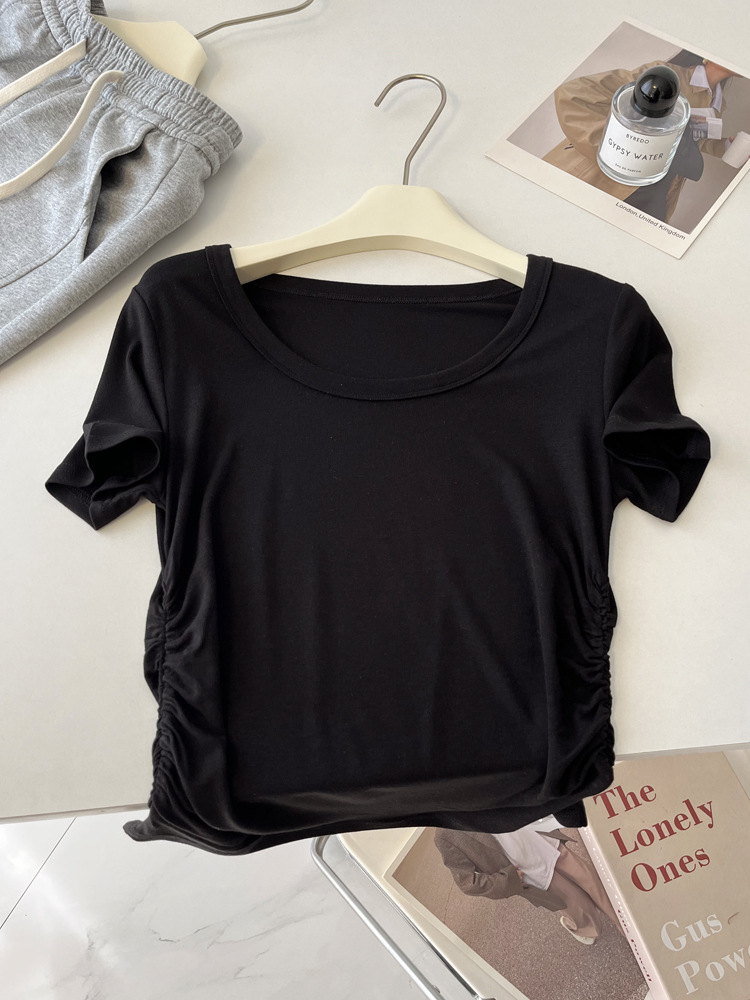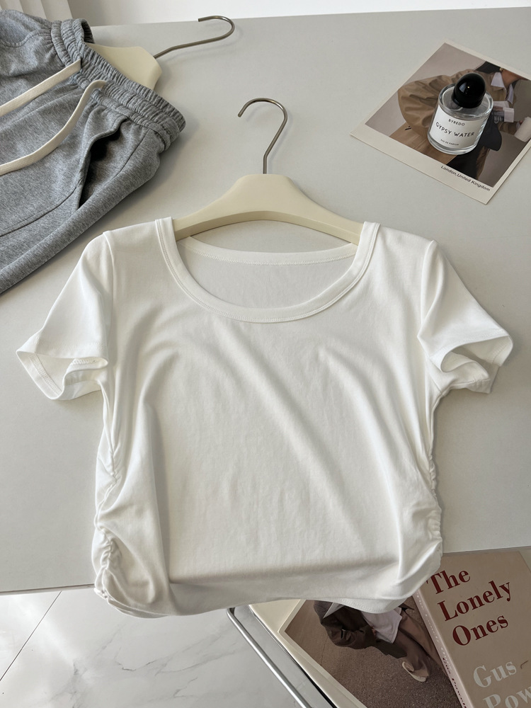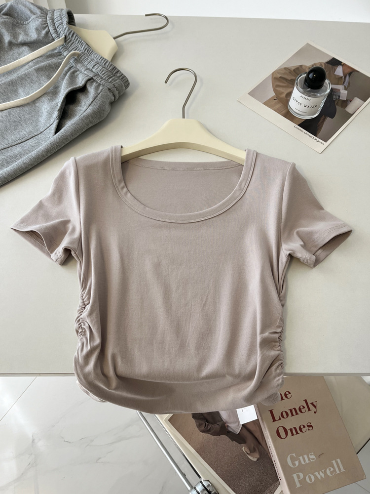 正肩大U领~设计感小众短袖t恤女夏季小个子修身收腰显瘦短款上衣