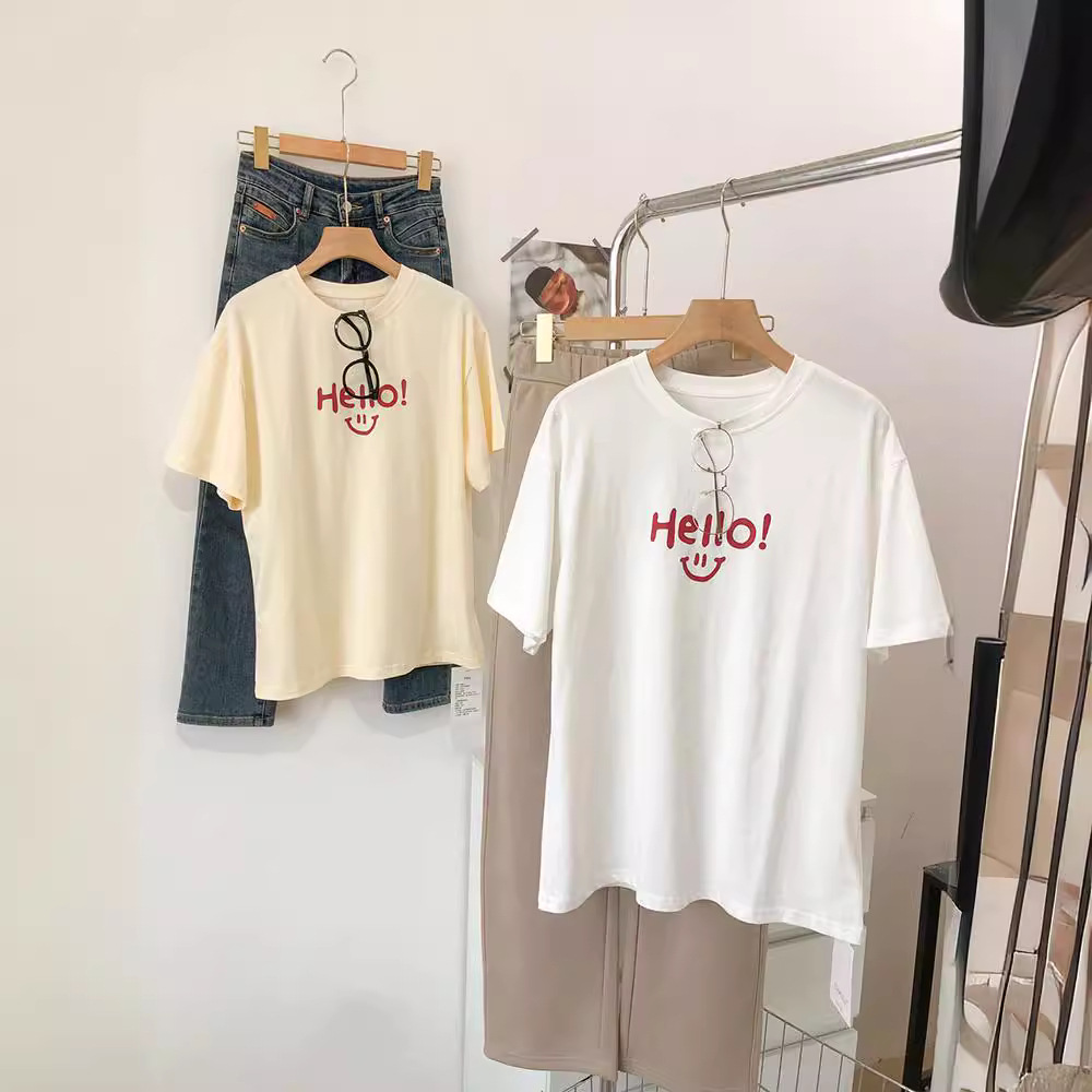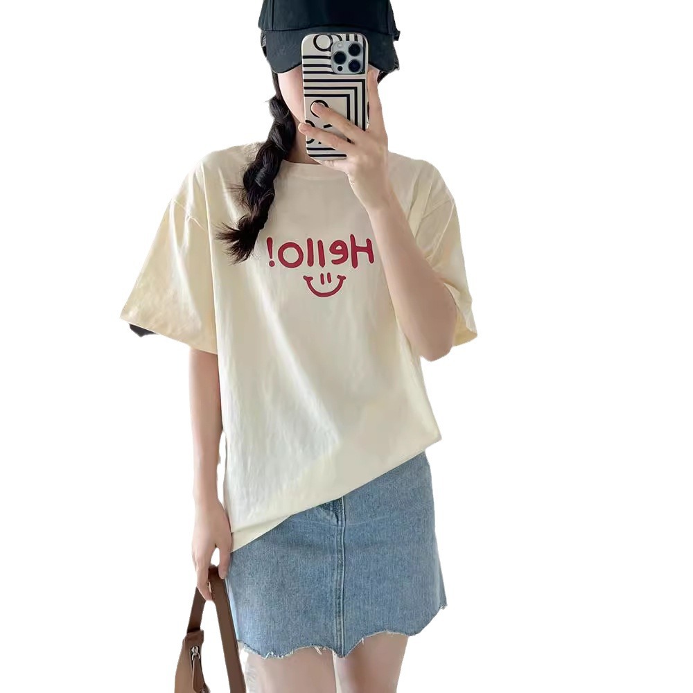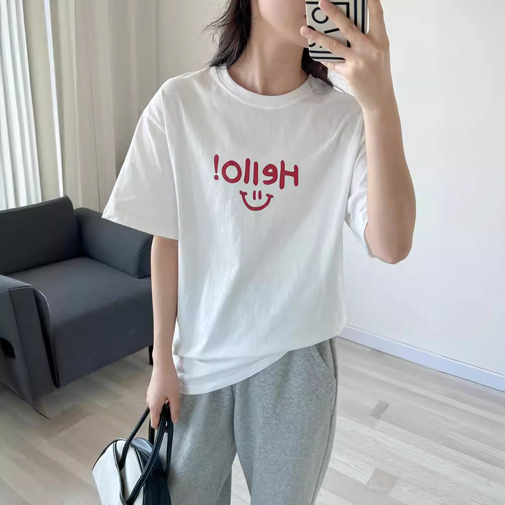 新款洋气别致字母印花圆领短袖T恤女夏季半袖打底衫时尚上衣
