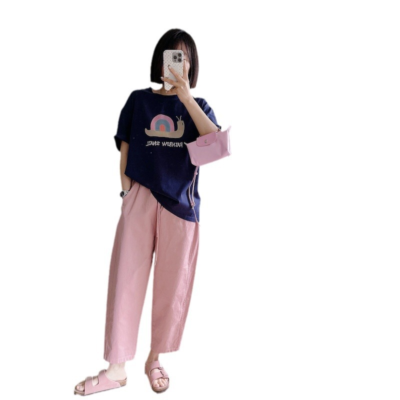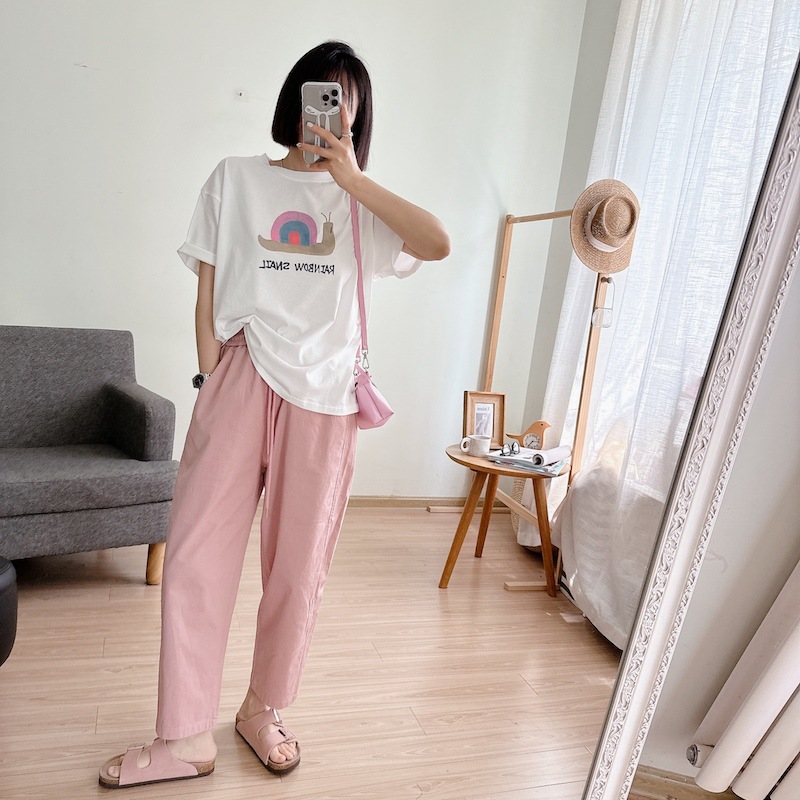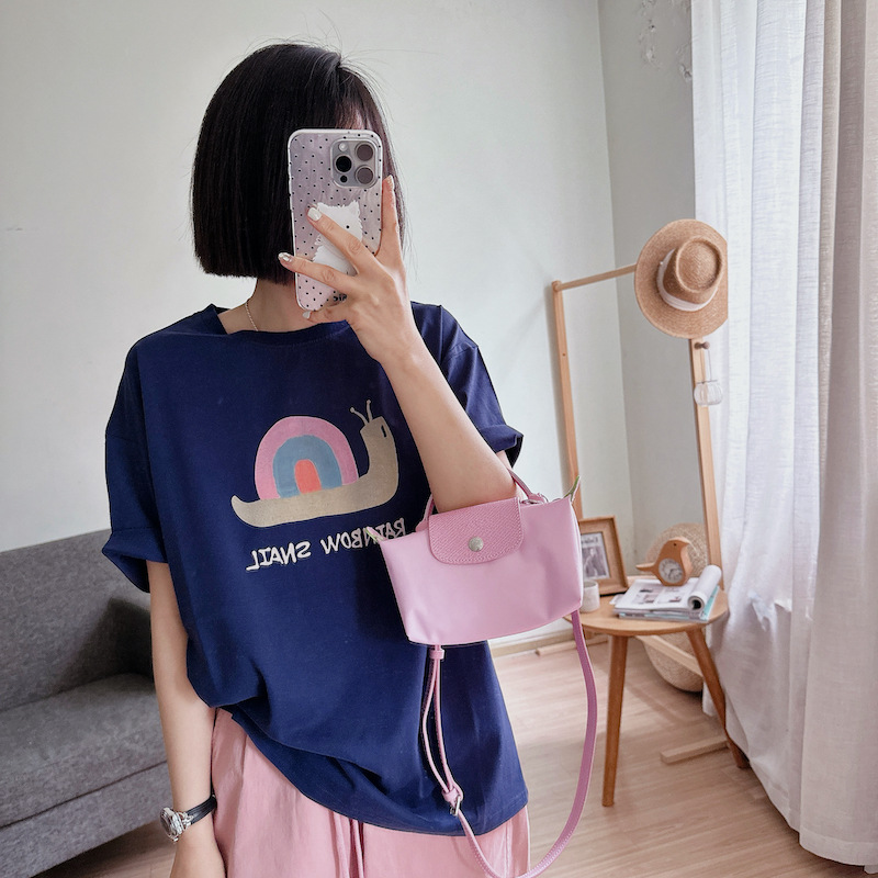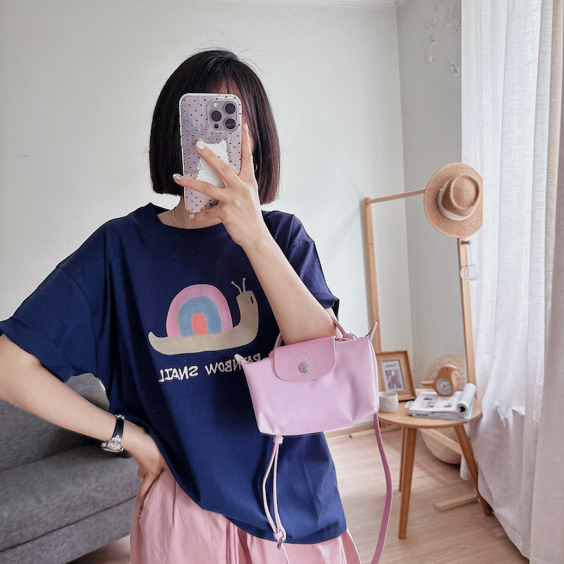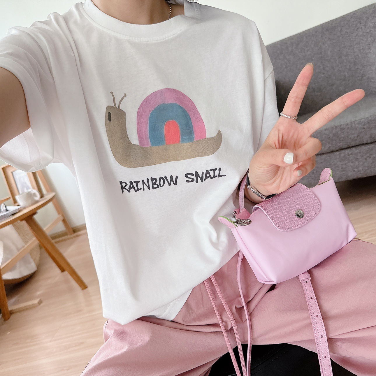 百搭韩版休闲减龄款卡通蜗牛宽松显瘦纯棉圆领短袖T恤衫女款夏季
