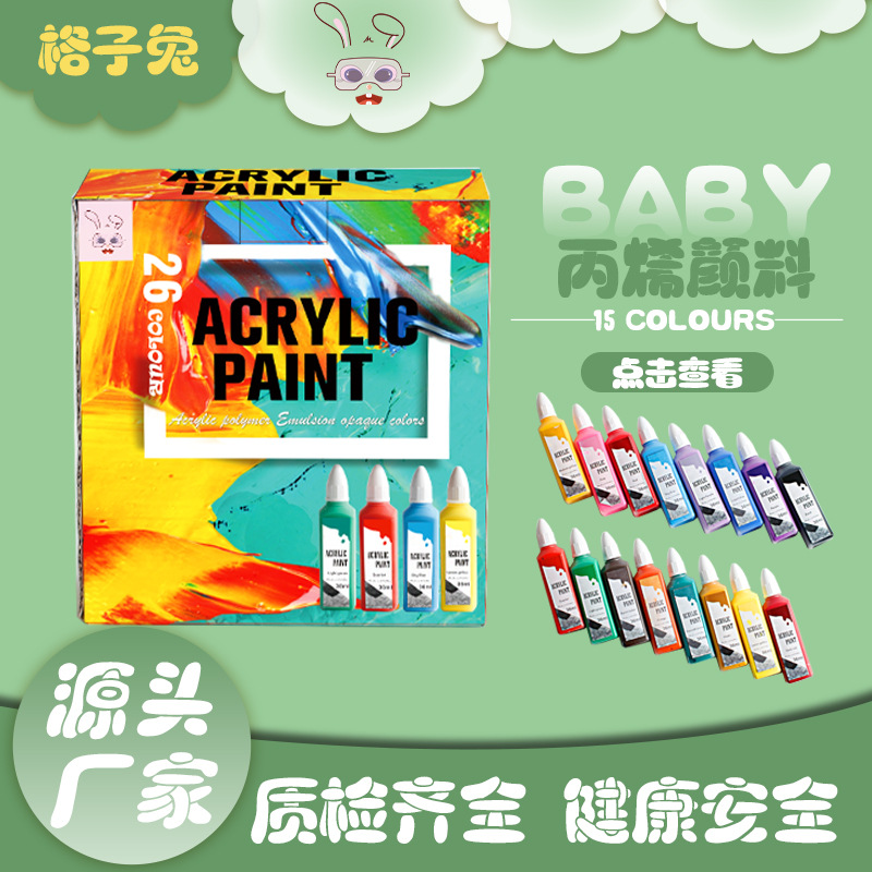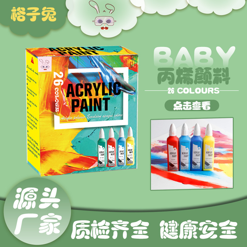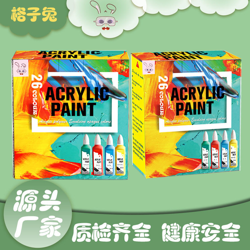 格子兔丙烯颜料儿童DIY美术涂料26色套装环保水性不掉色