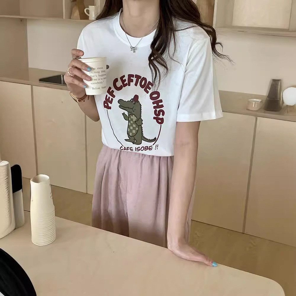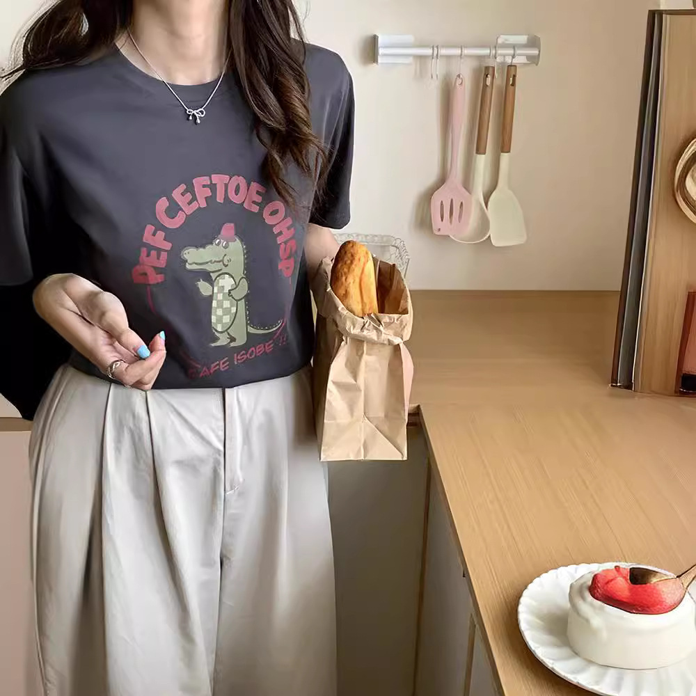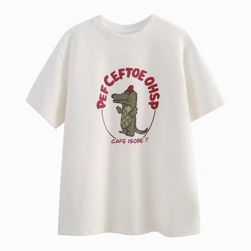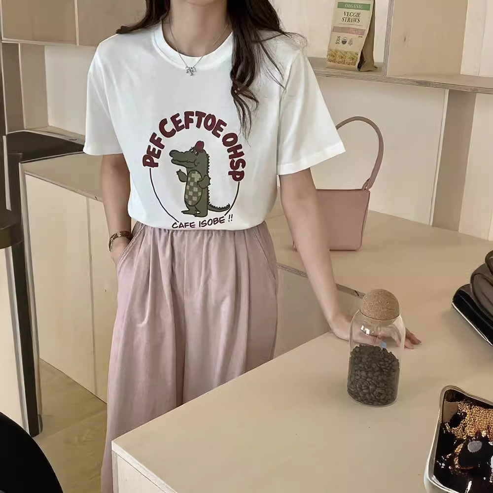 春夏减龄卡通字母印花圆领短袖t恤女宽松显瘦打底衫纯棉上衣ins潮